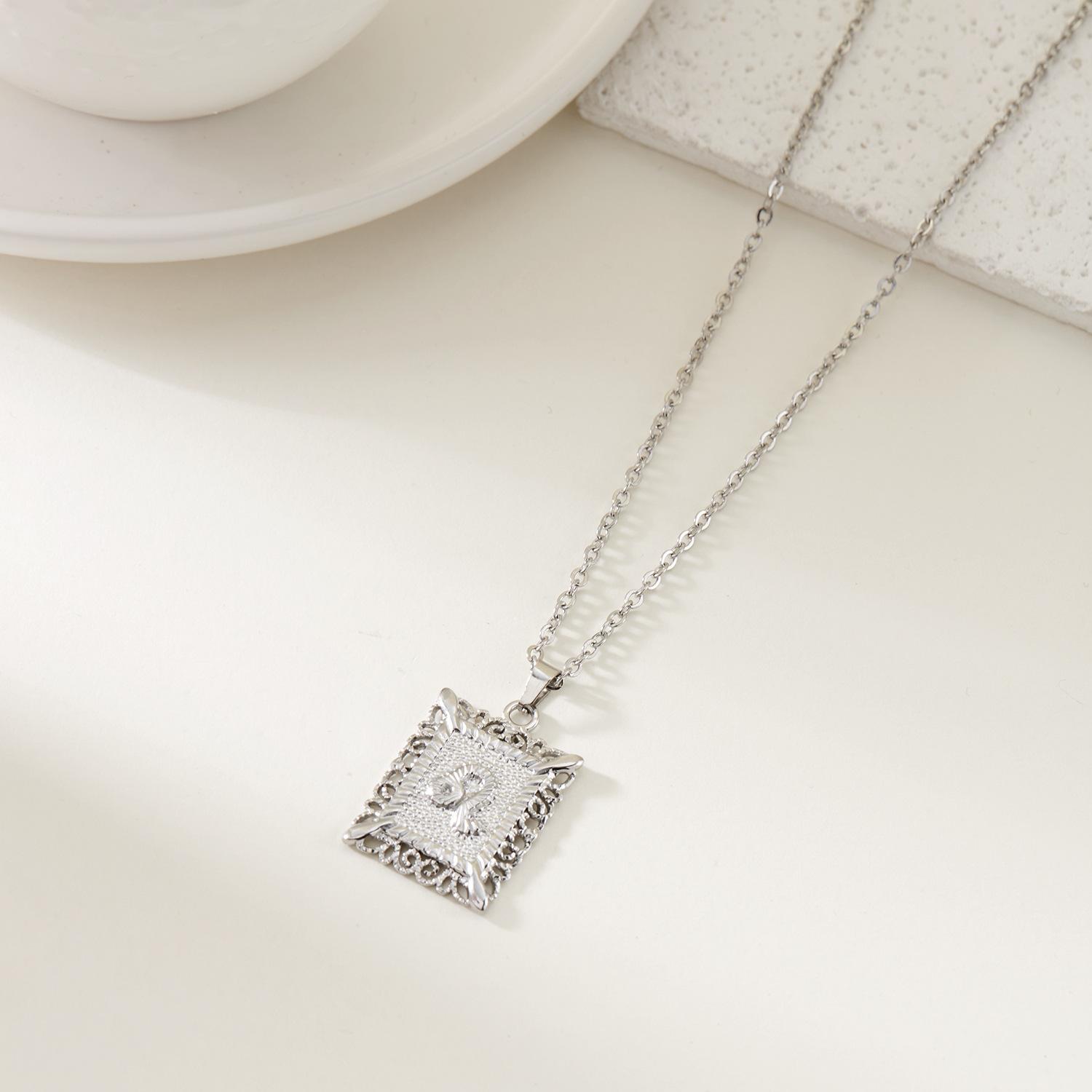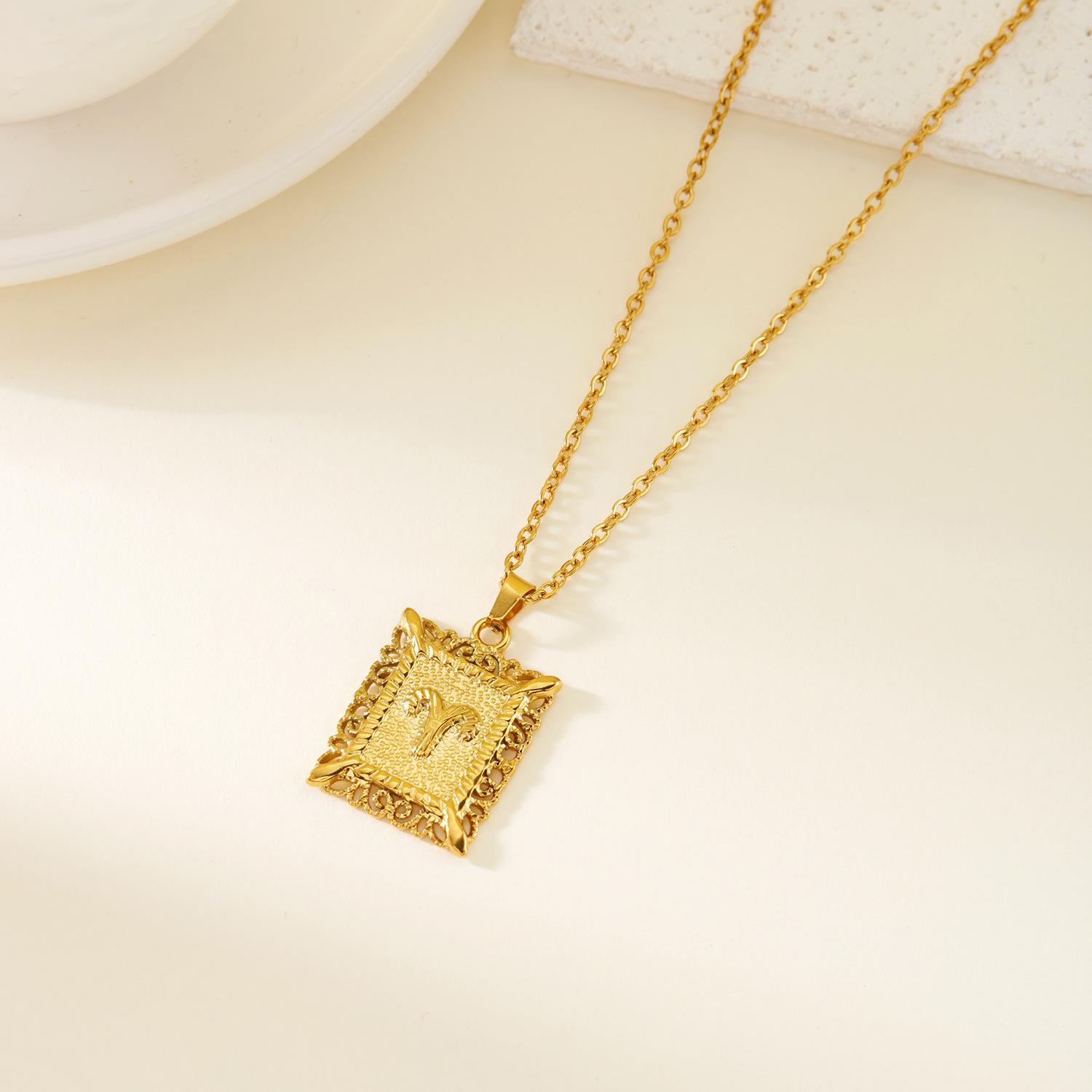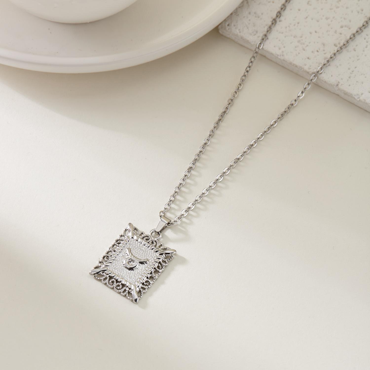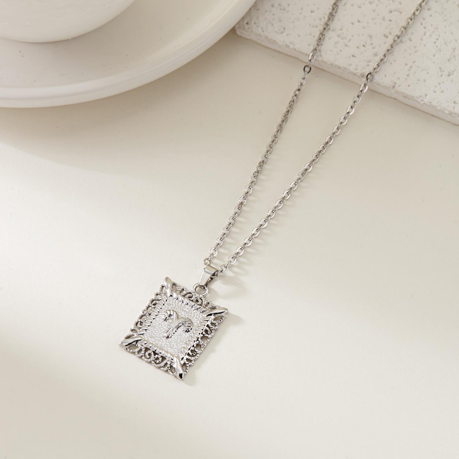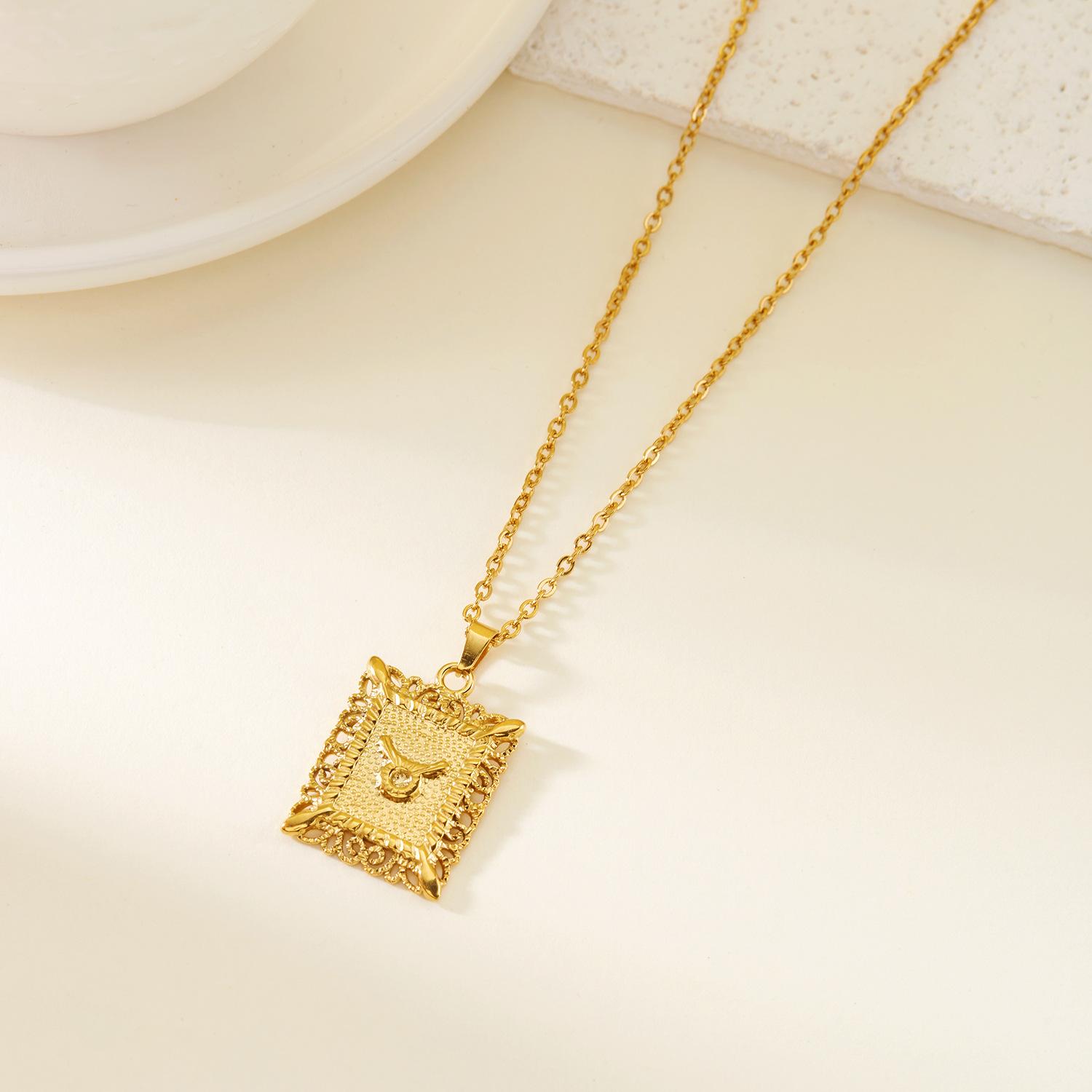 Collar de acero inoxidable con doce constelaciones, accesorios europeos y americanos transfronterizos, no se decolora, colgante con símbolo de constelación hueca cuadrada.