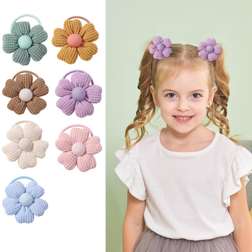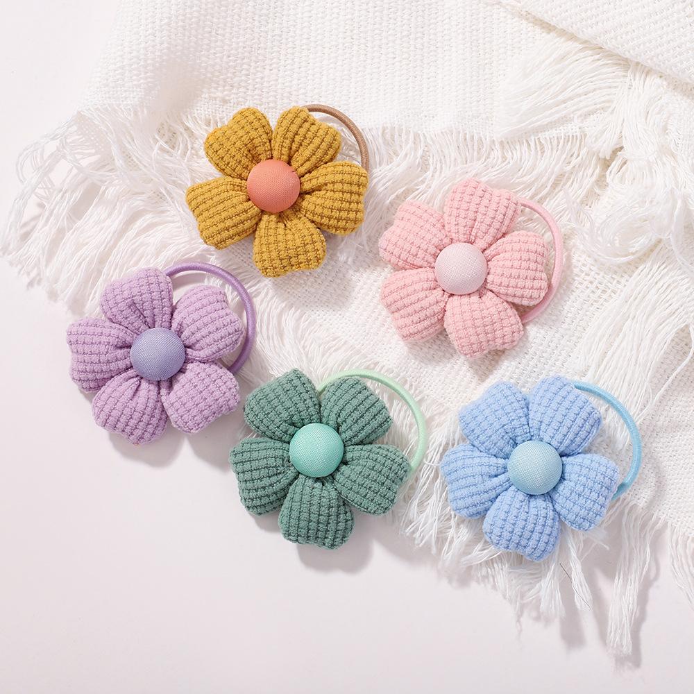 [Nombre] Tela de algodón y lino transfronteriza girasol de cinco pétalos accesorios para niños relleno tridimensional lindo niña cuerda para el cabello cuerda para el cabello 4548