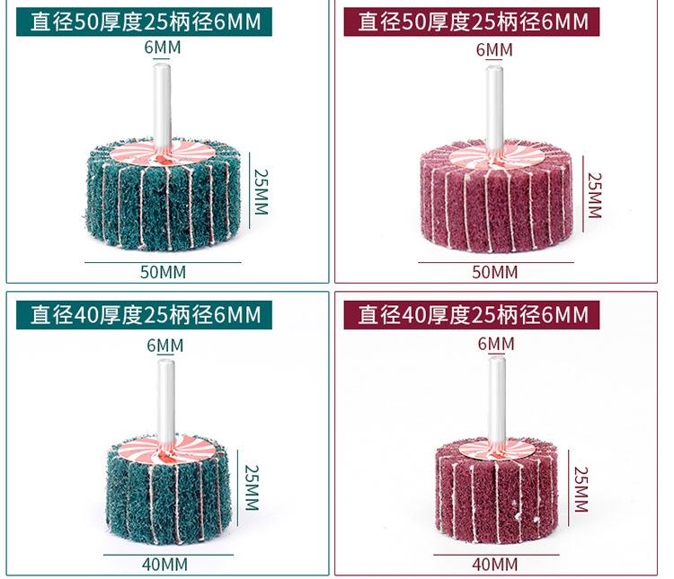 Mango Ft6Mm Rueda Ala Voladora Cabeza de Pulido Cepillada Almohadilla de Limpieza con Arena Cabeza de Pulido Rueda de Pulido de Acero Inoxidable Cabeza de Pulido de Fibra de Nailon