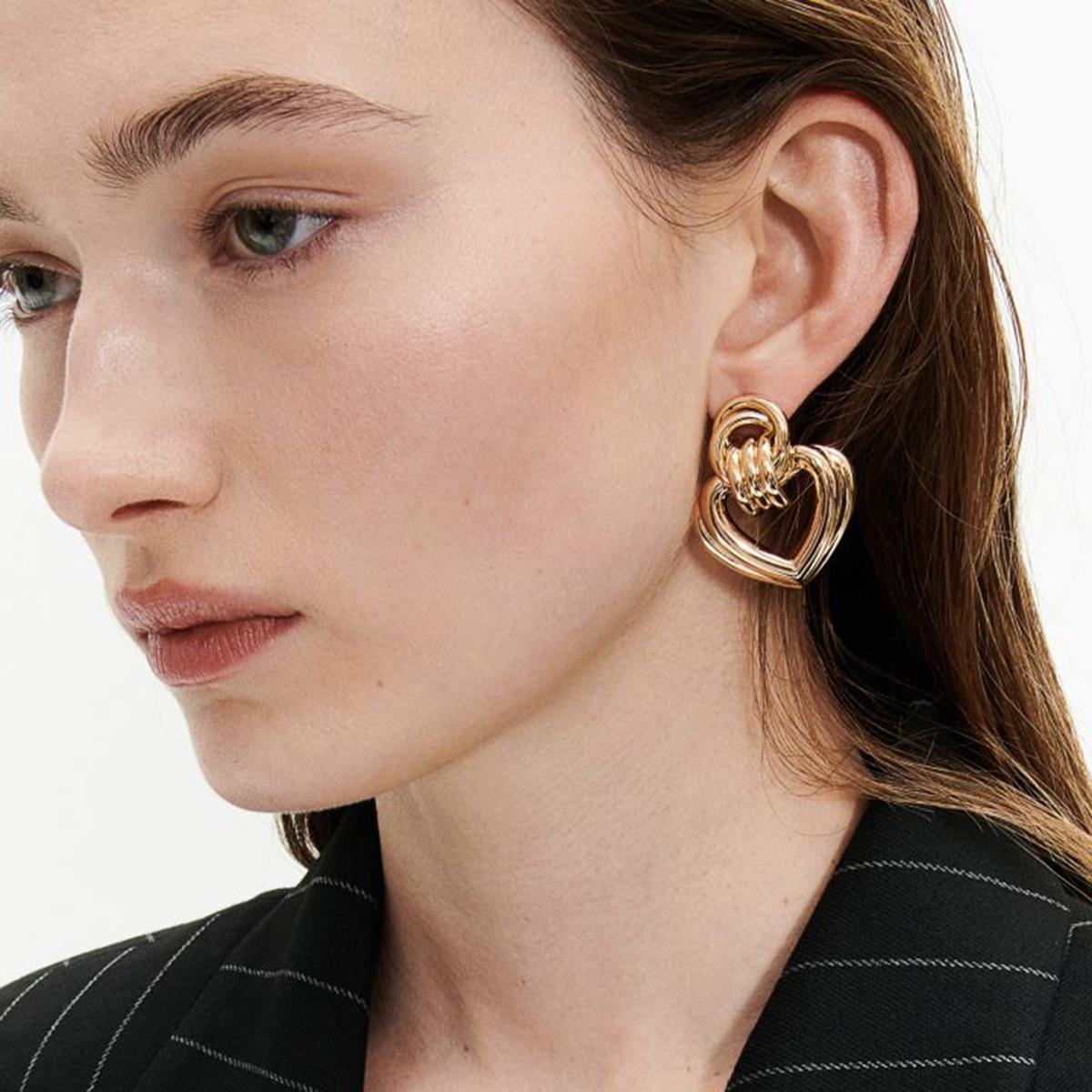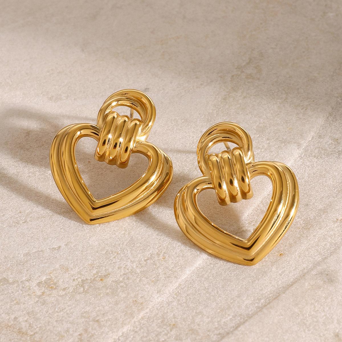 Pendientes huecos de acero inoxidable Jieding con forma de corazón, pendientes de alta gama con un toque de nicho, pendientes de acero de titanio europeos y americanos, joyería transfronteriza.