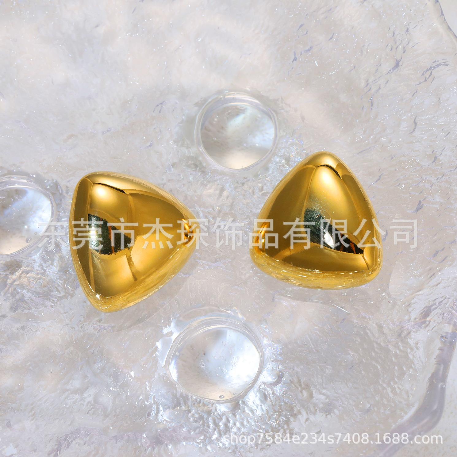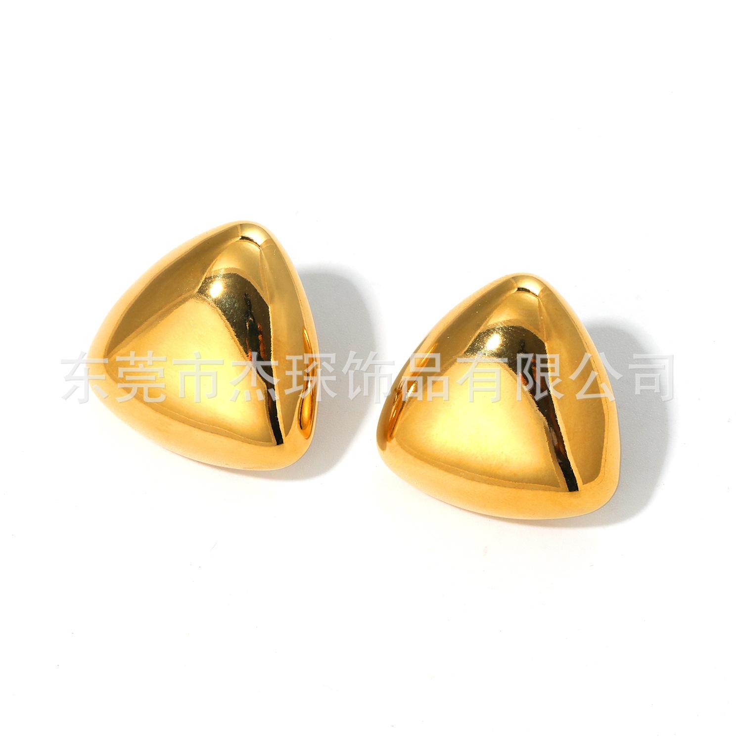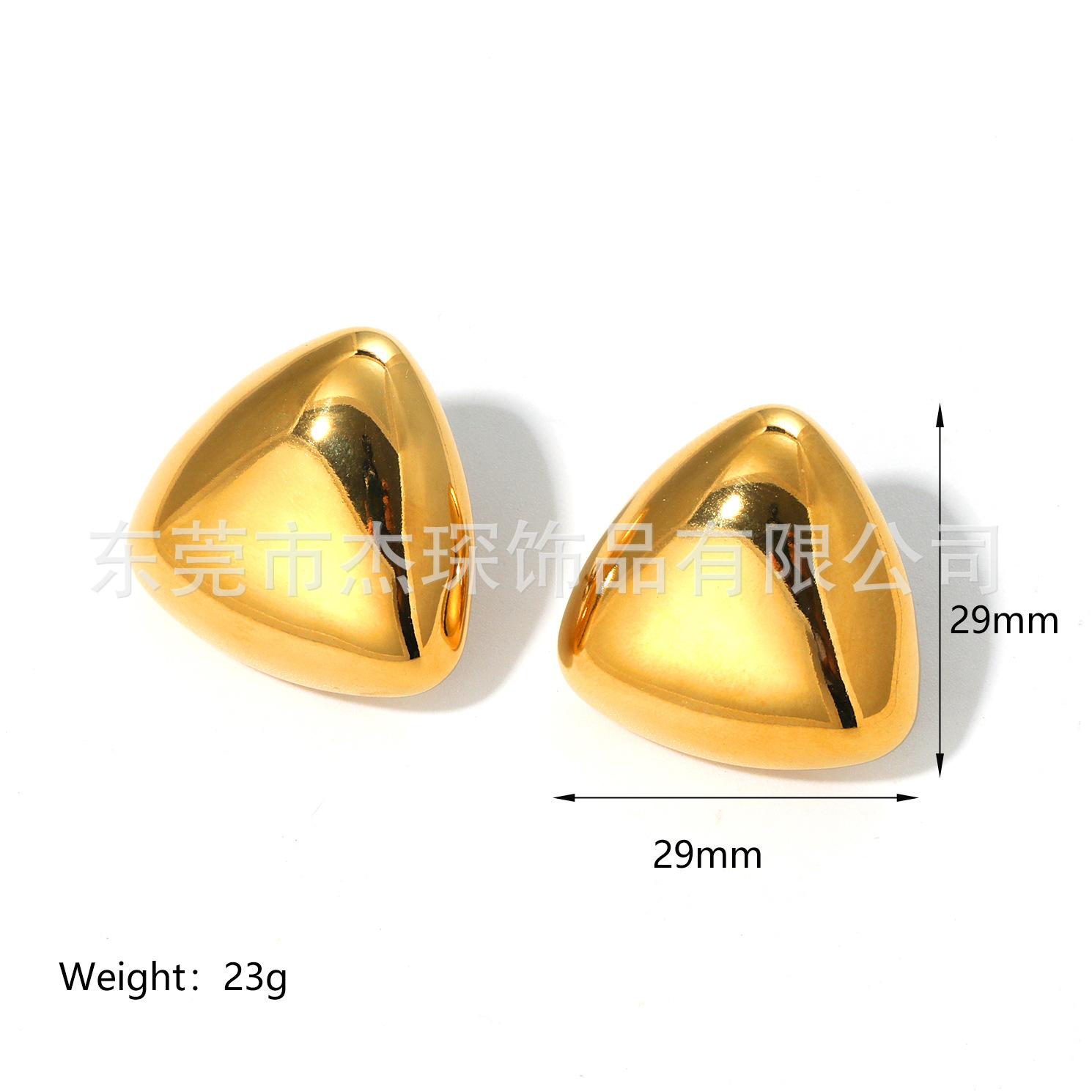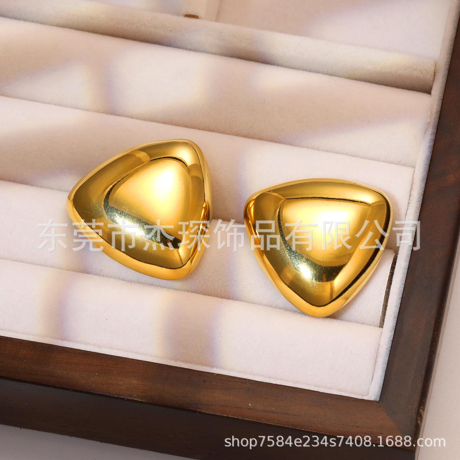 Pendientes grandes de triángulo geométrico dorado liso de oro de 18 quilates con baño de titanio de acero inoxidable INS europeos y americanos