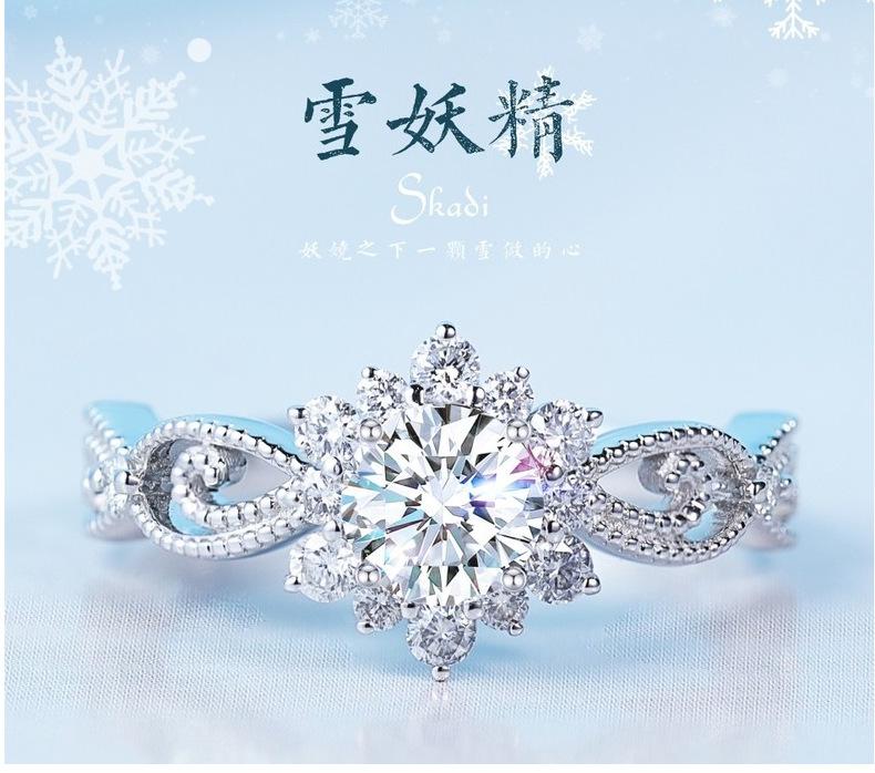 Nuevo anillo de bodas de lujo para mujer con moissanita de plata esterlina y diamantes de duende de nieve de 1 quilate, venta directa de fábrica.
