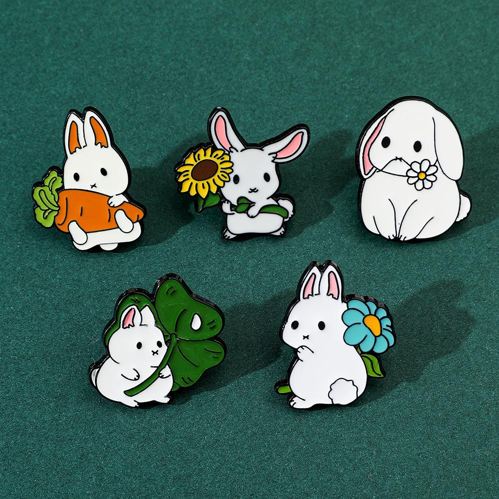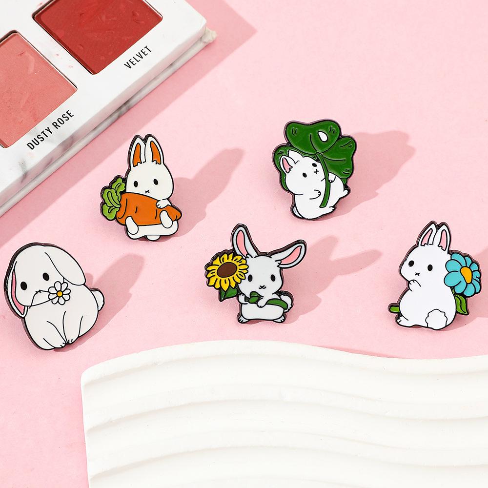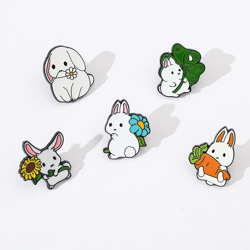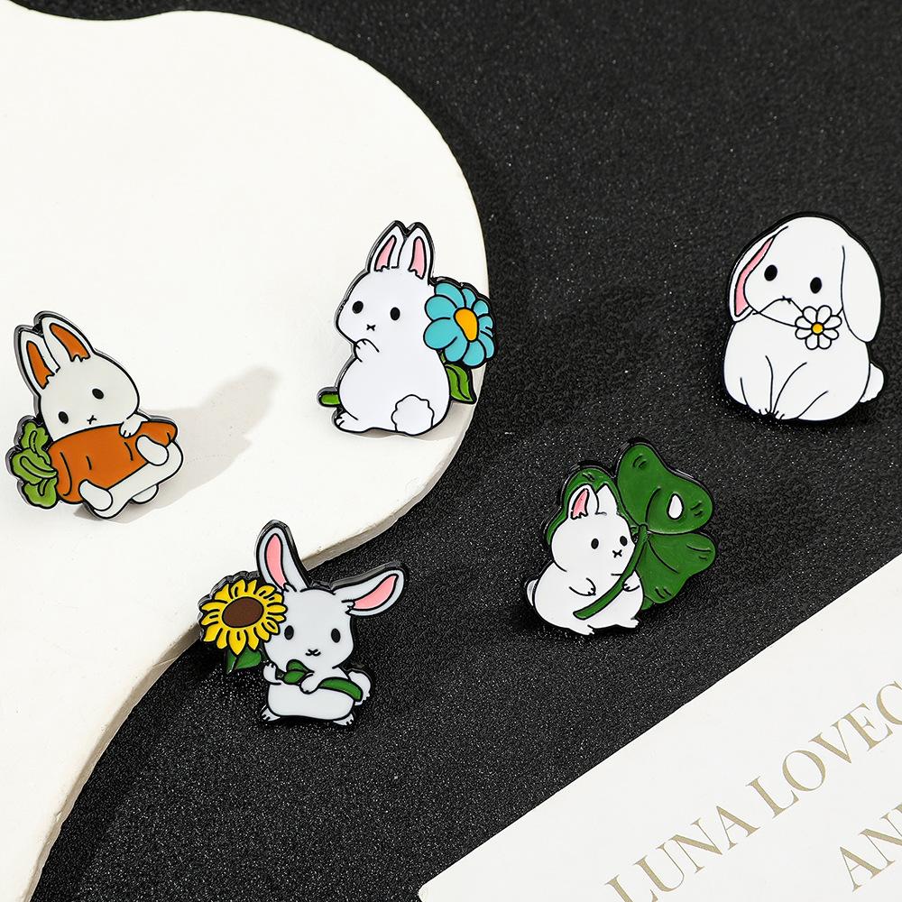 Insignia de metal con forma de conejo de dibujos animados, suave y adorable, con personalidad creativa, broche de aleación con forma de gota de aceite, accesorios