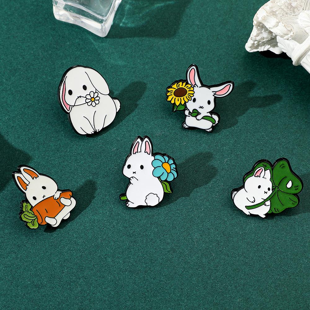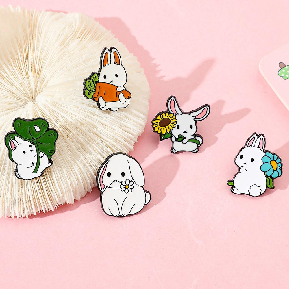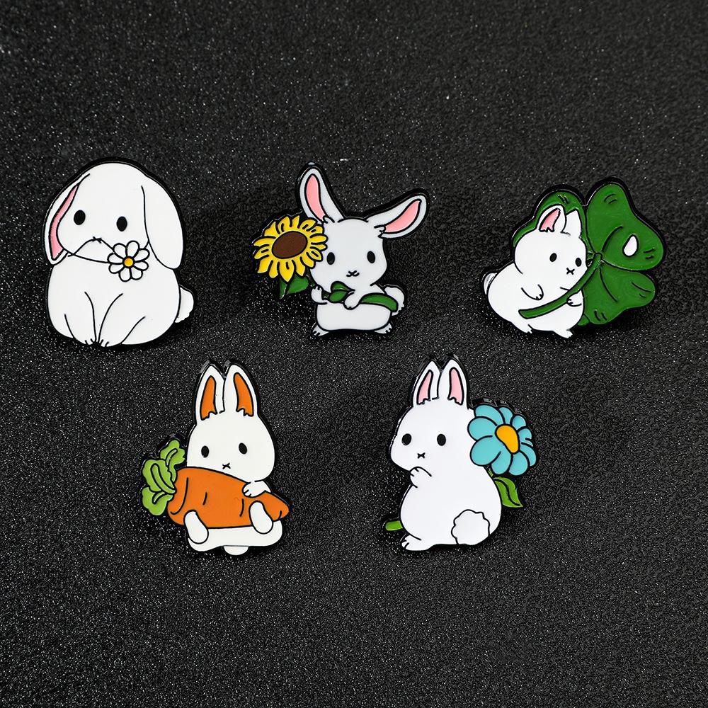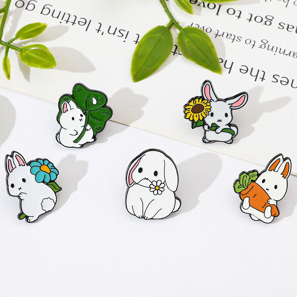 Insignia de metal con forma de conejo de dibujos animados, suave y adorable, con personalidad creativa, broche de aleación con forma de gota de aceite, accesorios