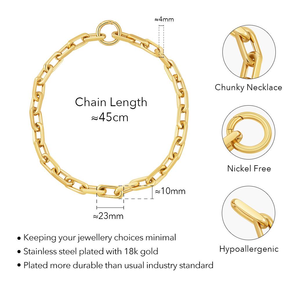 Collar con personalidad de hip-hop para hombre y mujer, cadena grande y gruesa de diseño de alta calidad en acero de titanio chapado en oro de 18 quilates, P243474