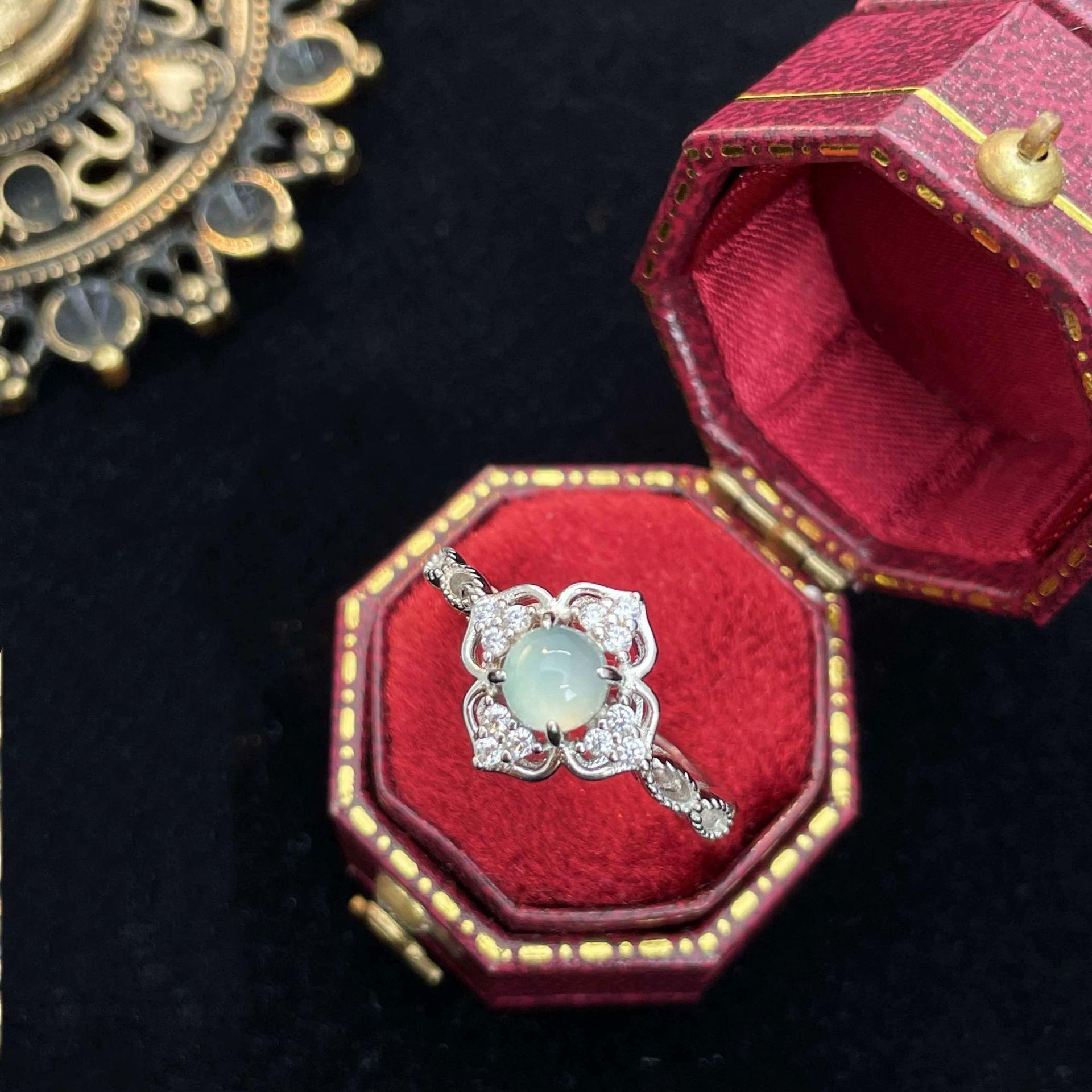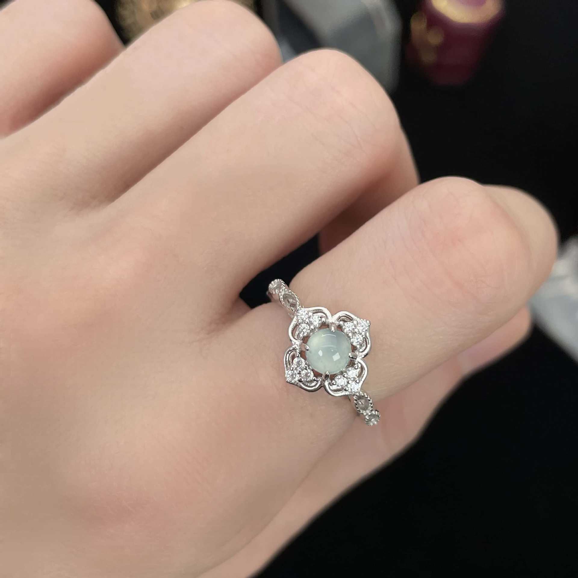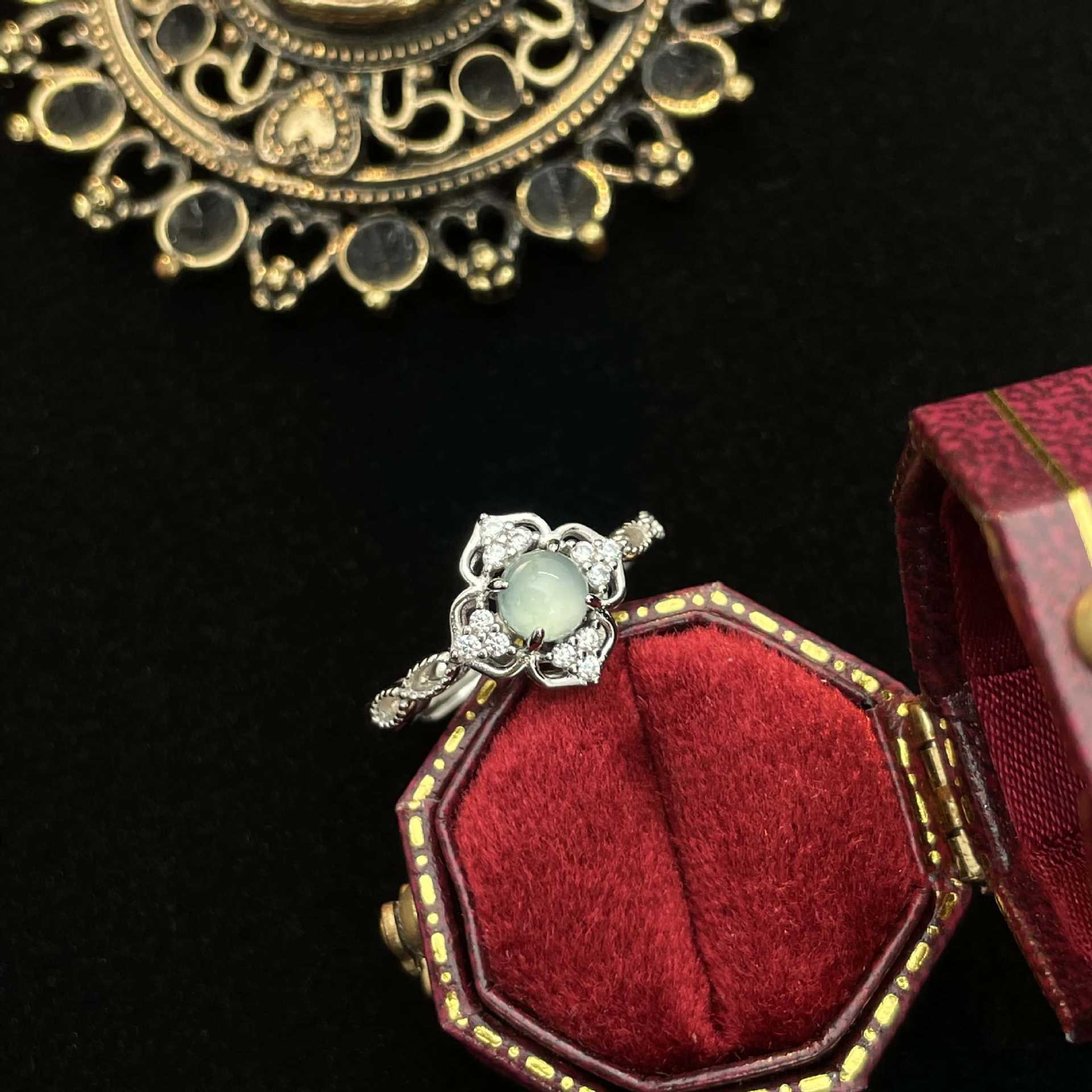 Nuevo anillo de jade de imitación con flores artísticas de estilo chino para mujer, diseño de nicho, joyería ligera de lujo, combina con todo, apertura de estilo chino.