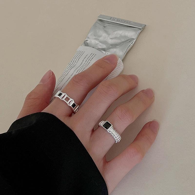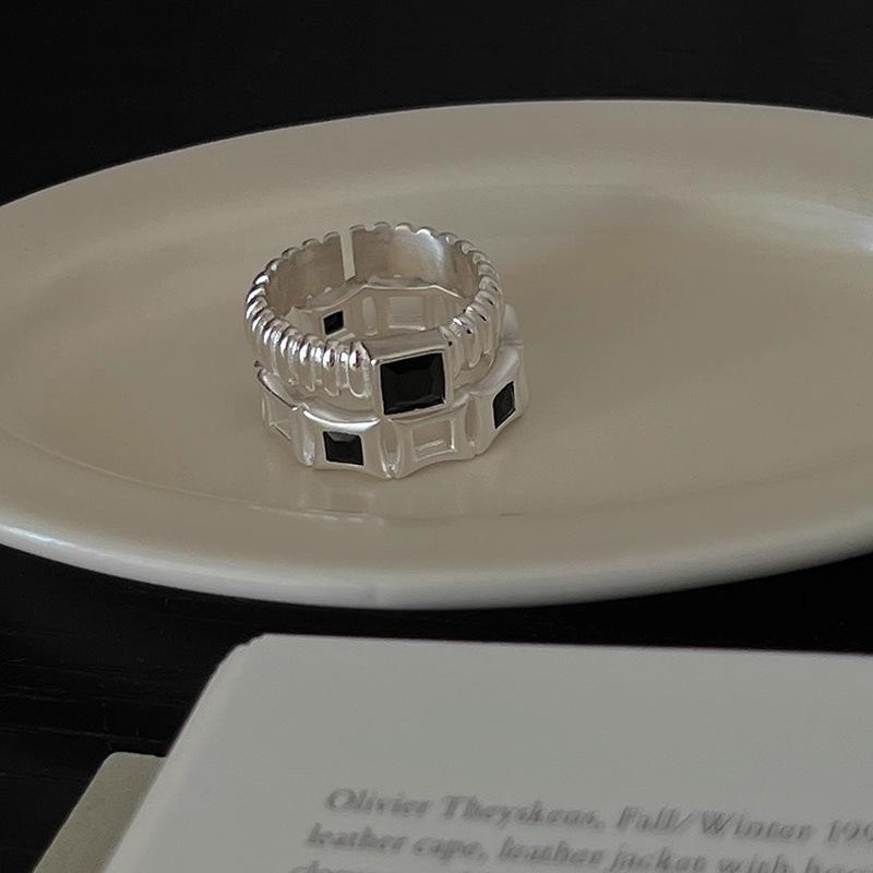 Compra Anillo Cuadrado Mate Circonita Negra Estilo Simple para Mujer Nicho de Alta Gama Lujo Ligero Combinable Personalizado Anillo para Dedo de Comida Nuevo Trendy al por mayor en Joom.pro