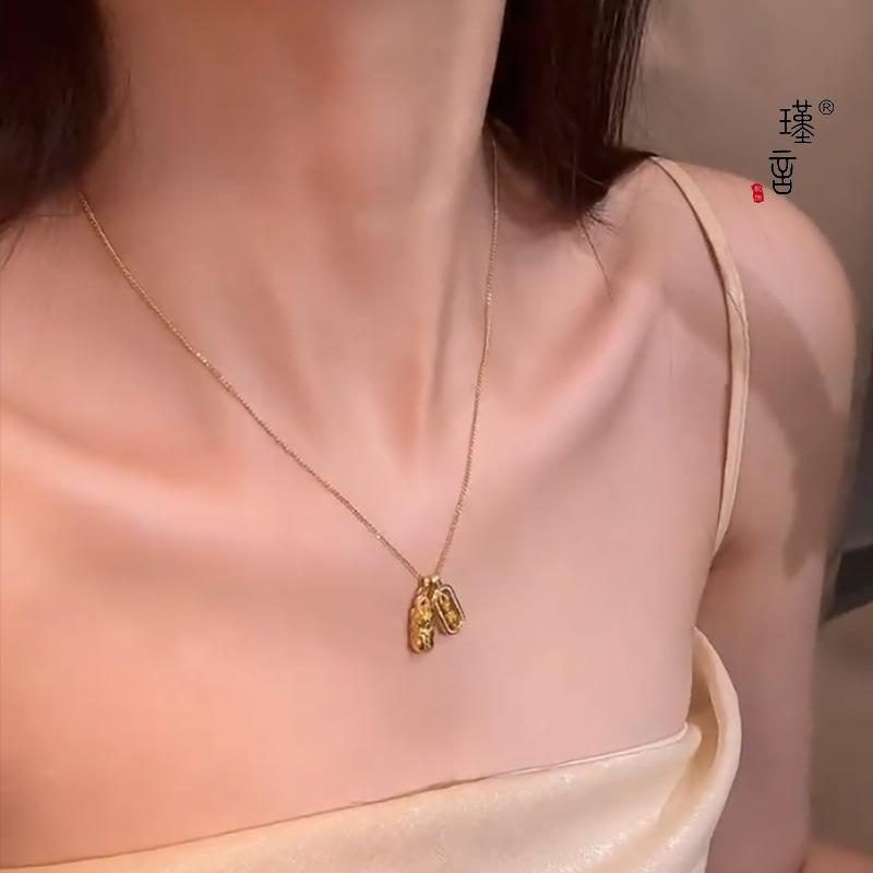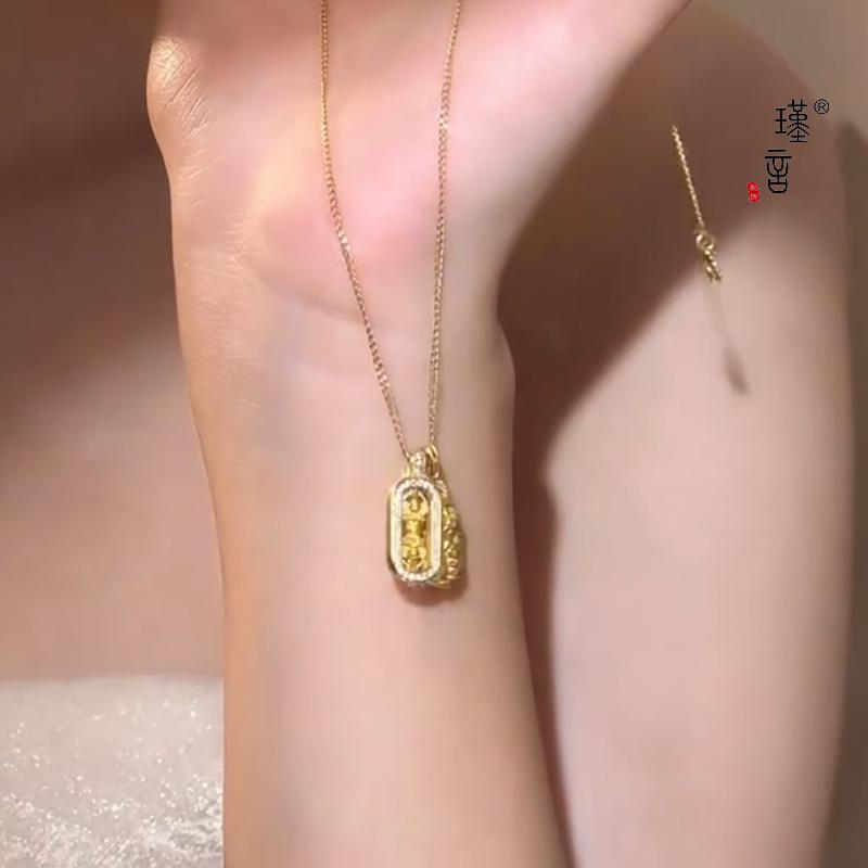 Jin Yan Wei Xue con collar de oro bañado en cobre, valiente diamante, mortero, colgante de diamantes apilados con cadena de clavícula de lujo
