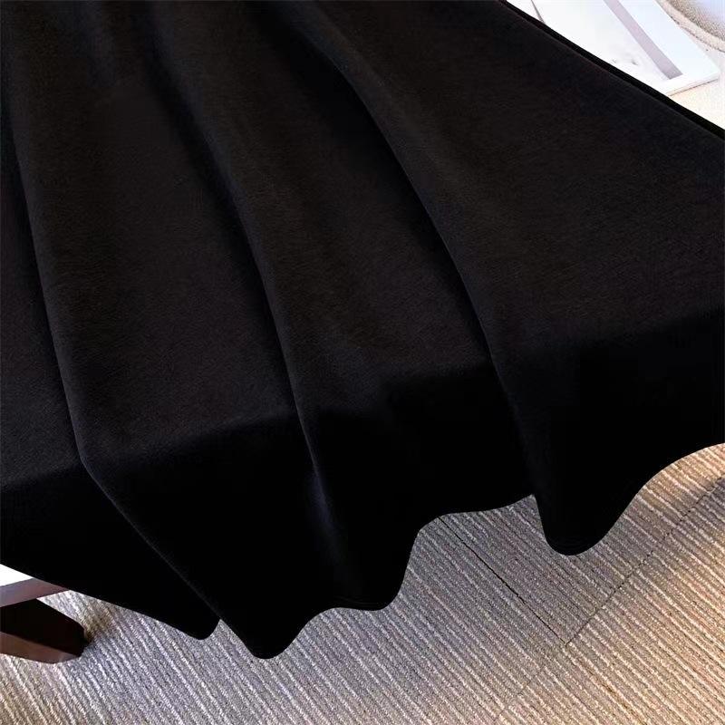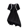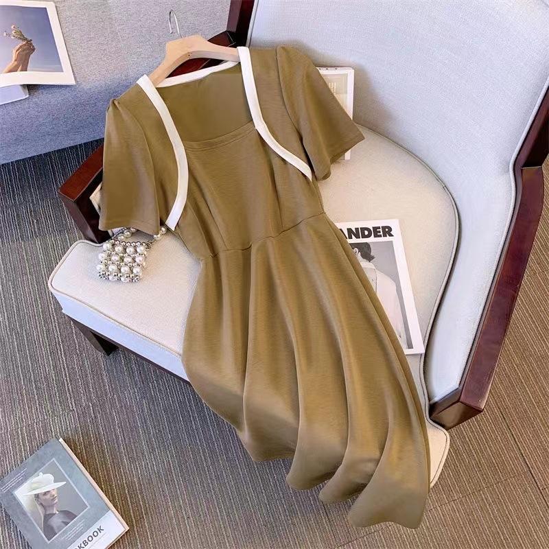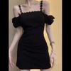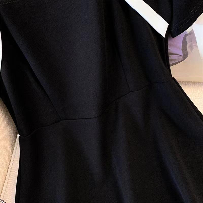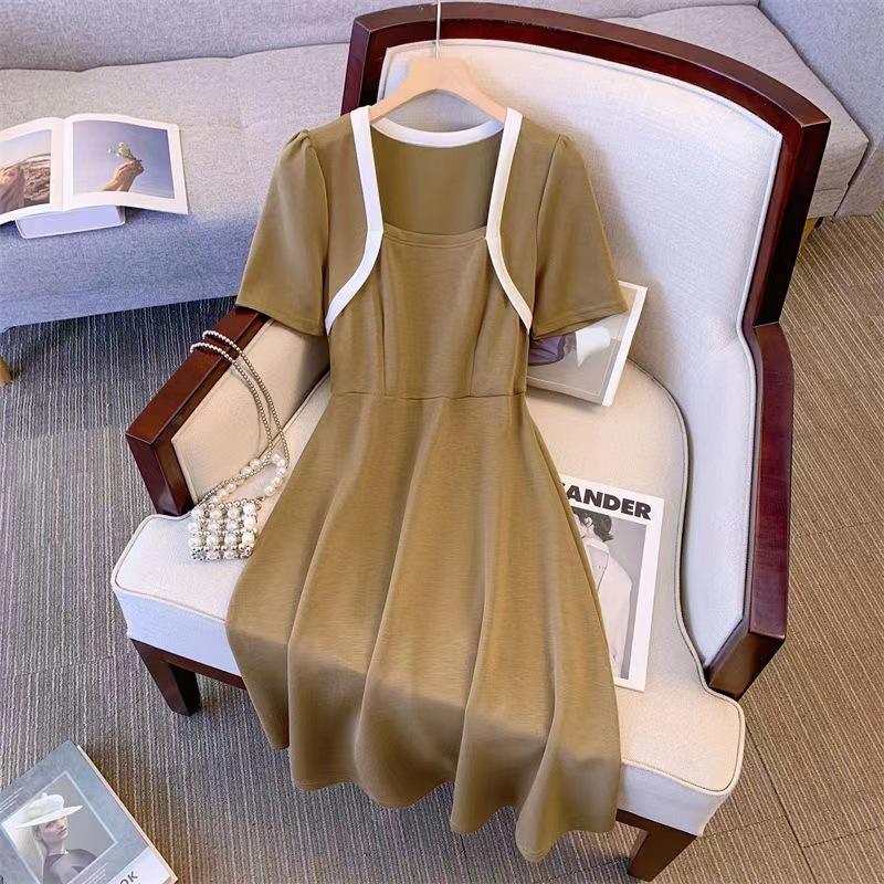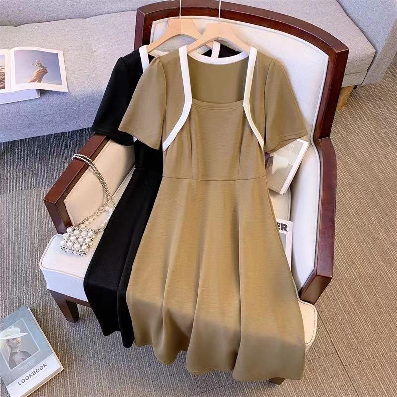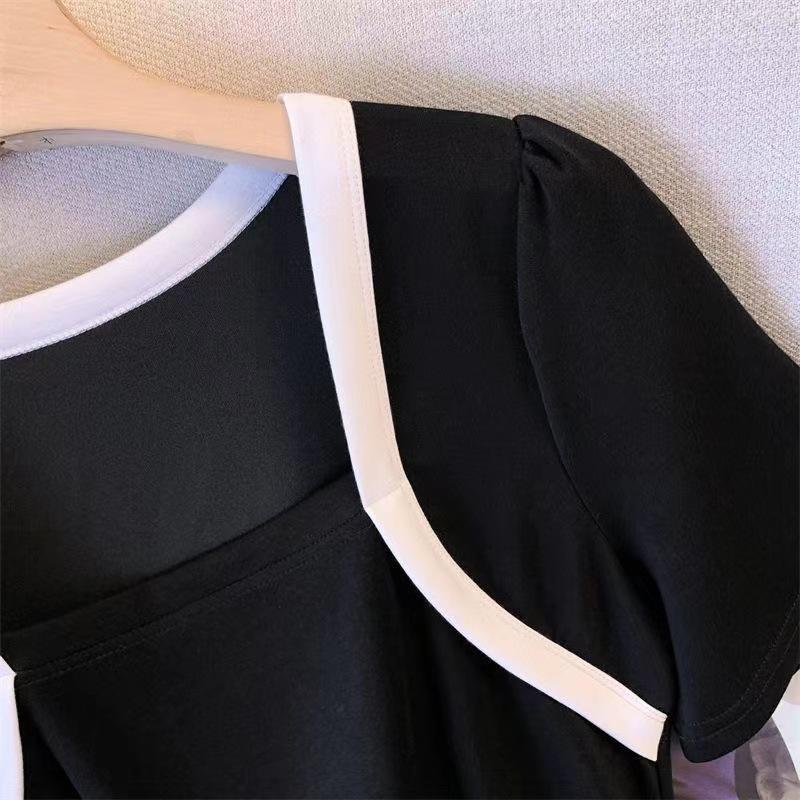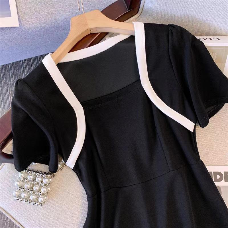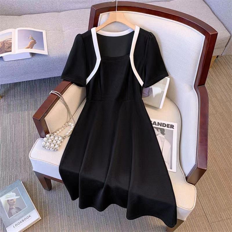 Vestido de verano de talla grande estilo francés con diseño de nicho para mujer, vestido negro con cuello cuadrado y adelgazamiento para chica gordita