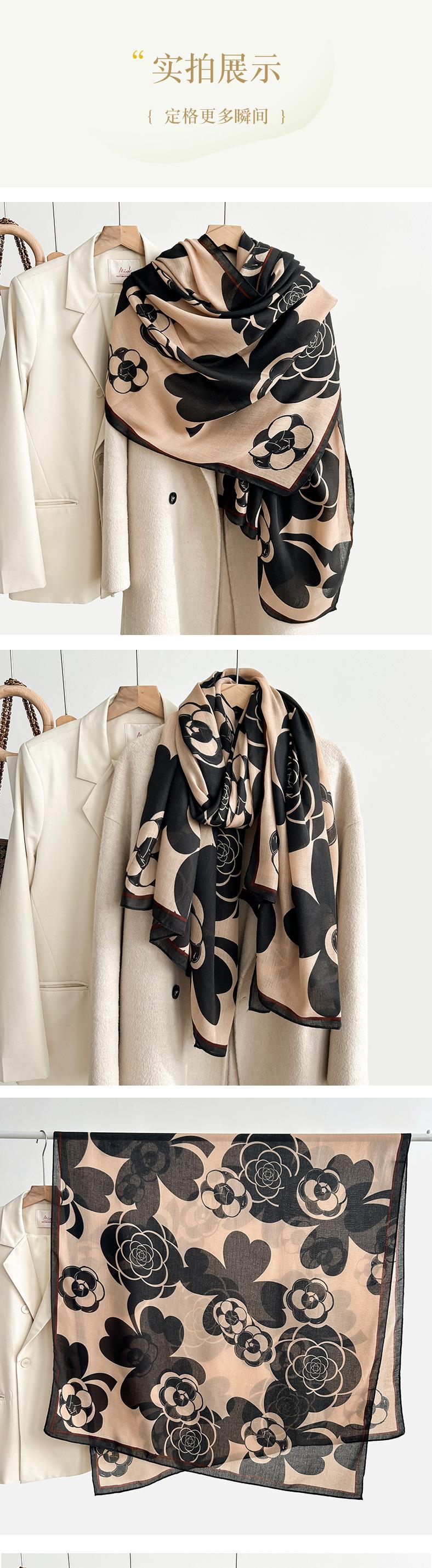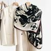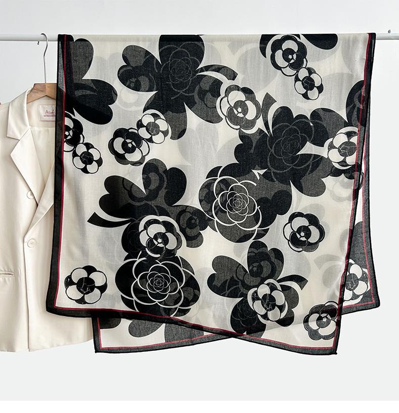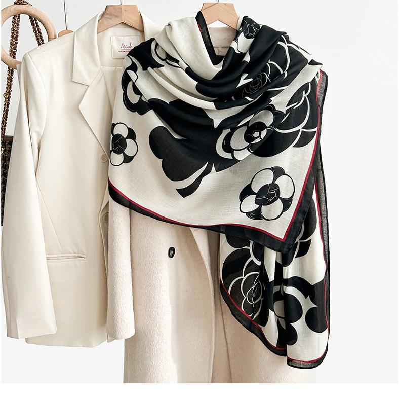Nuevo chal de alta gama con estampado de camelias, textura de lana de seda, bufanda larga de espiga, C hogar, bufanda para mujer de lujo ligero
