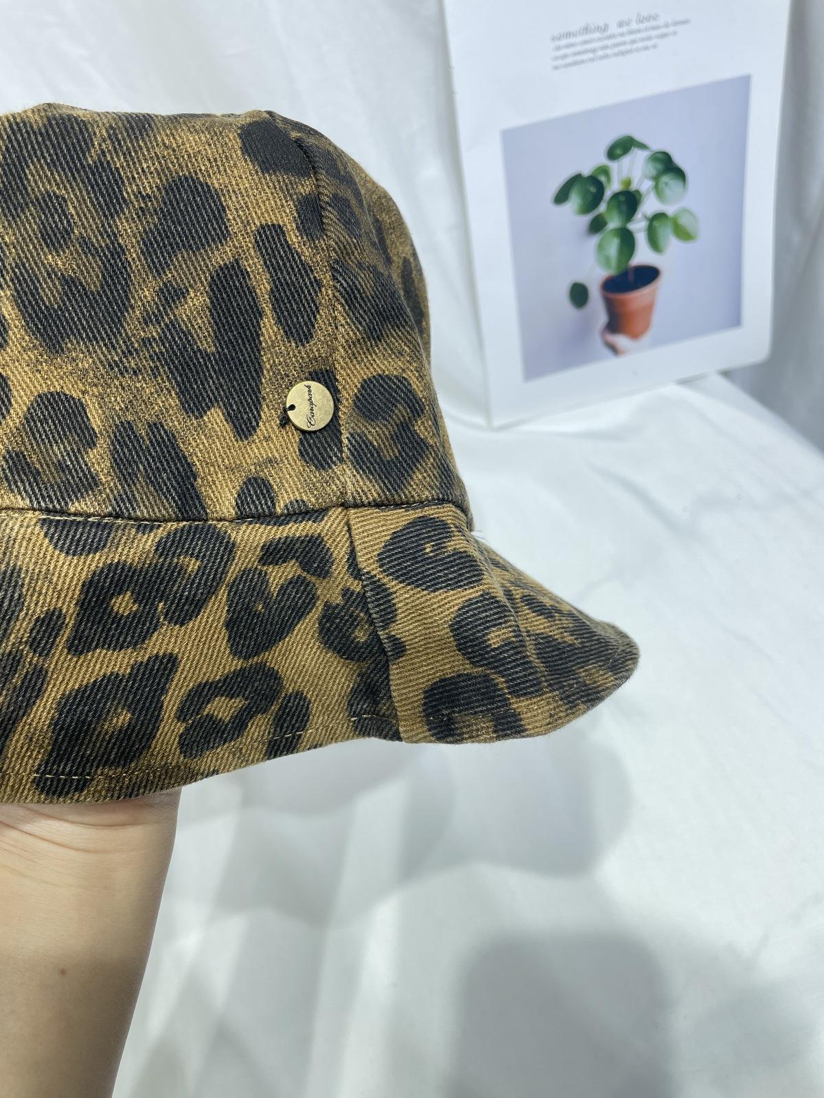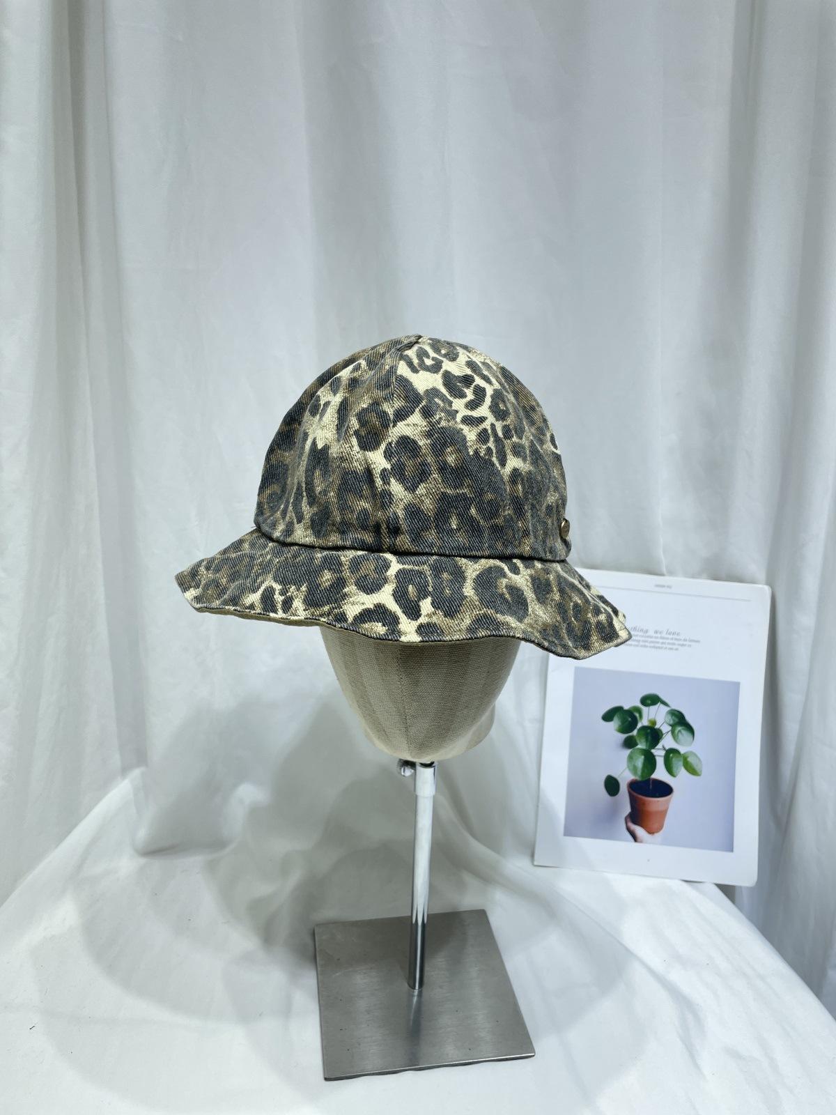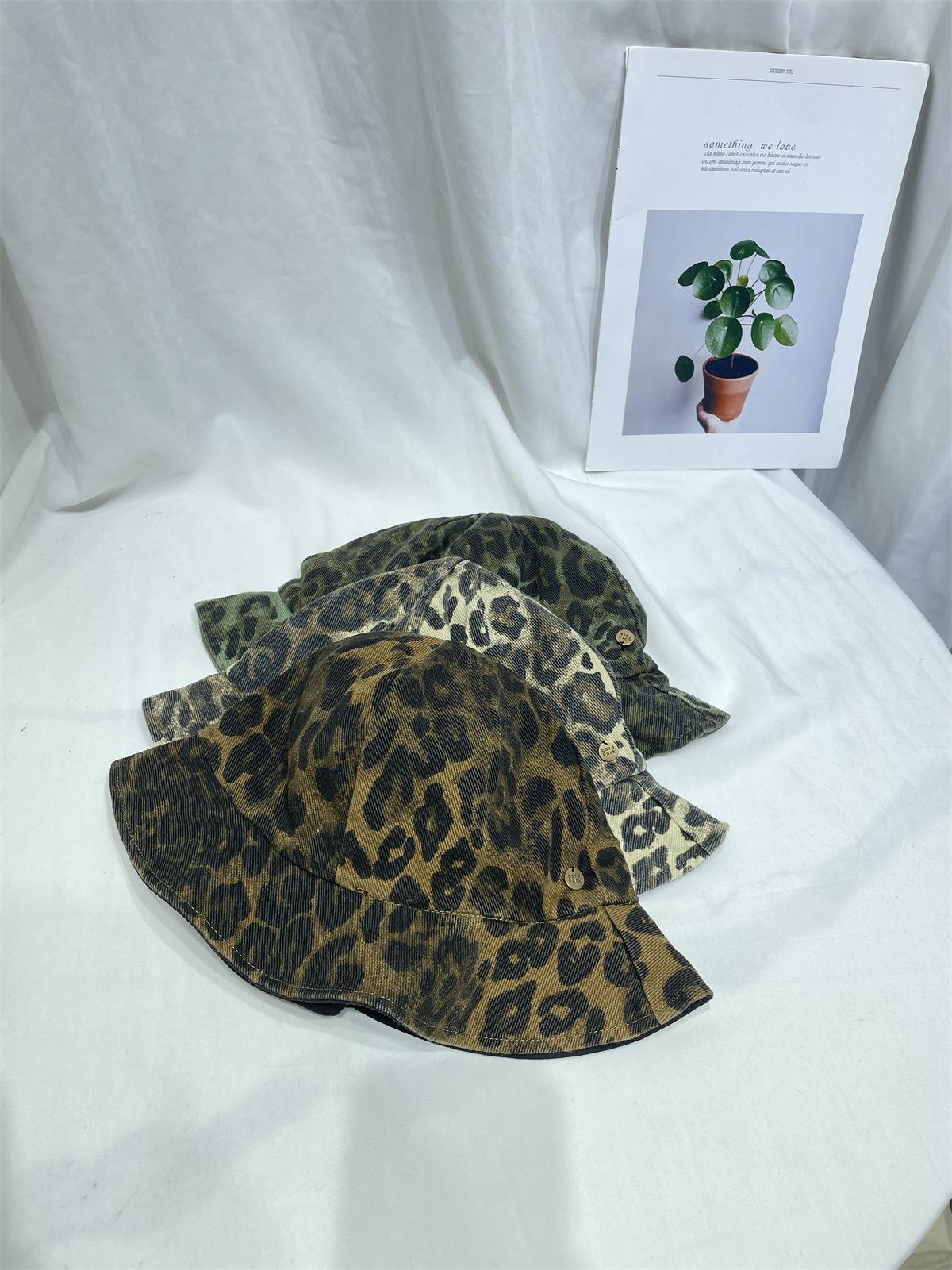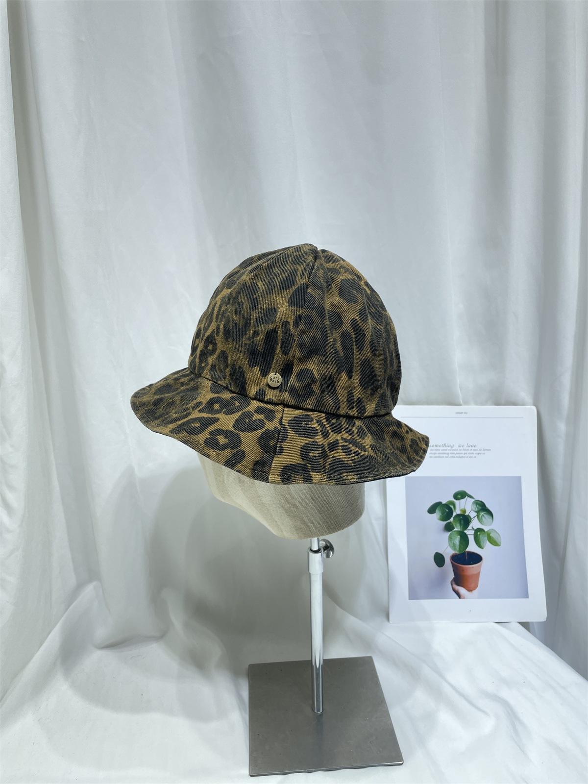 Sombrero de Pescador con Estampado de Leopardo de Doble Cara para Mujer Primavera y Otoño Estilo Japonés Retro Moda Rostro Mostrando Pequeño Domo Casual Sombrero para el Sol
