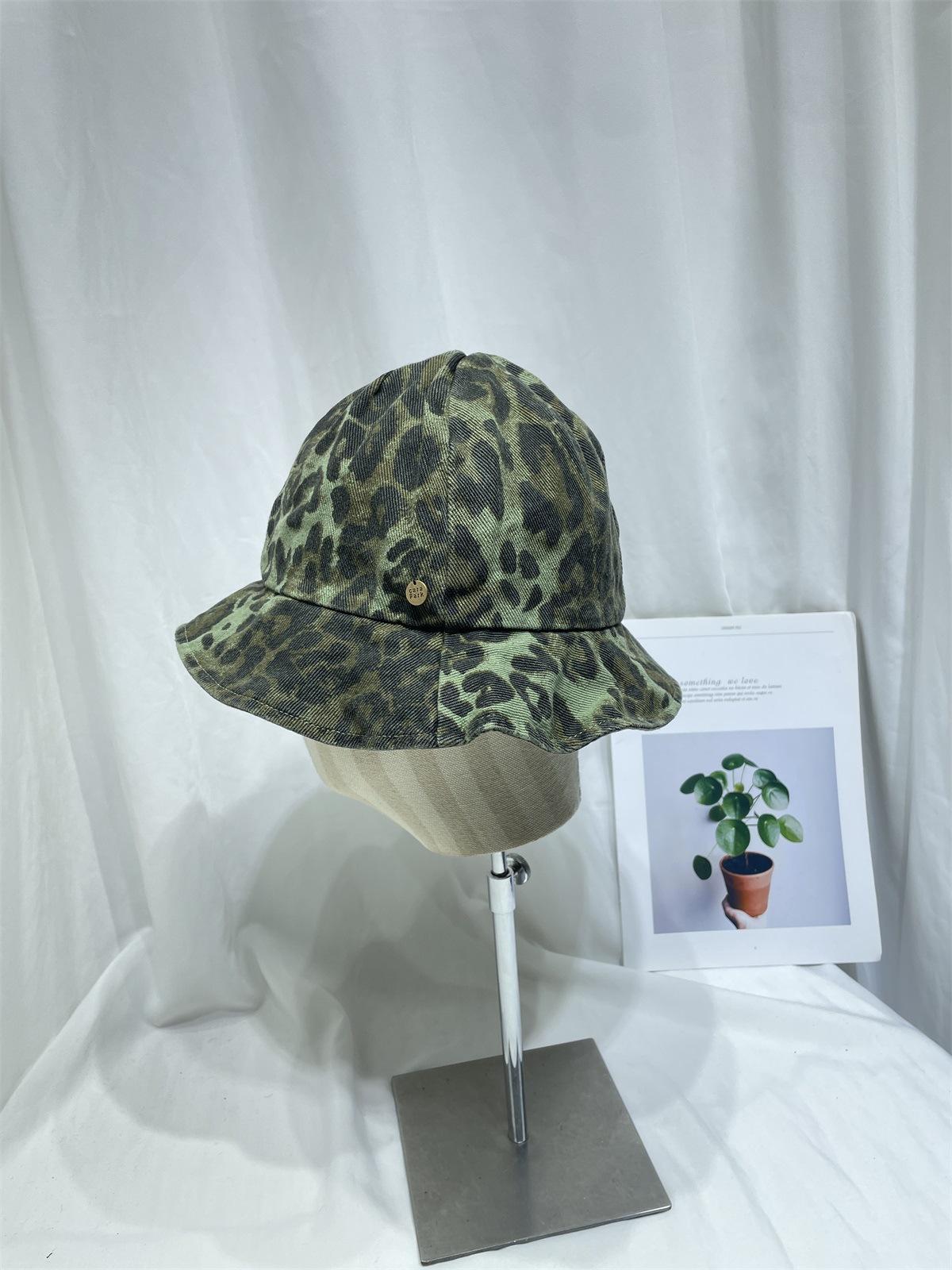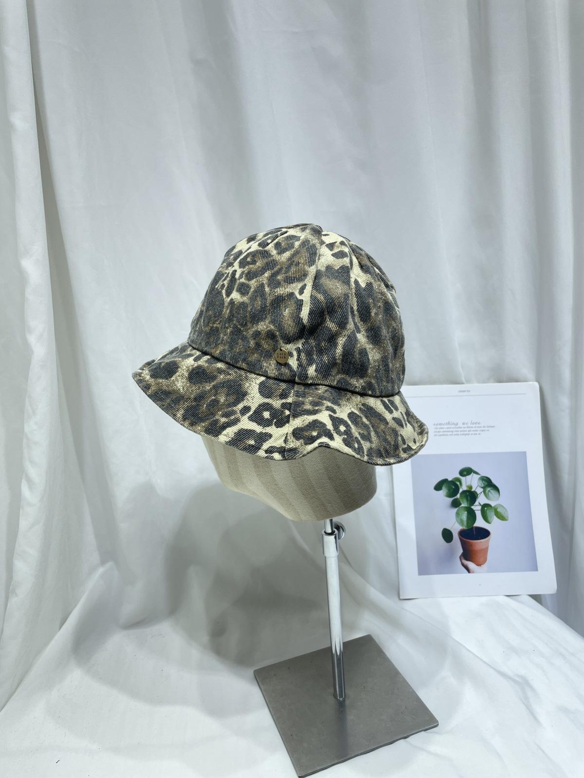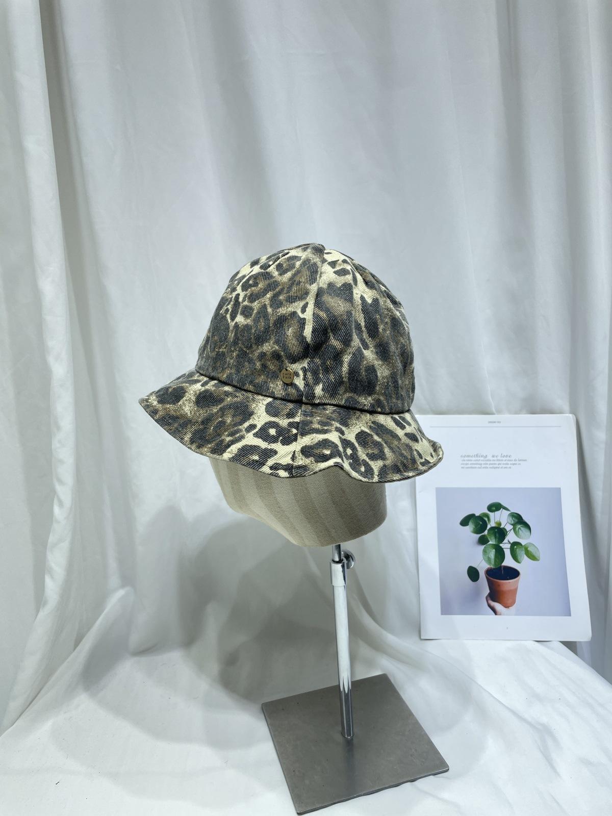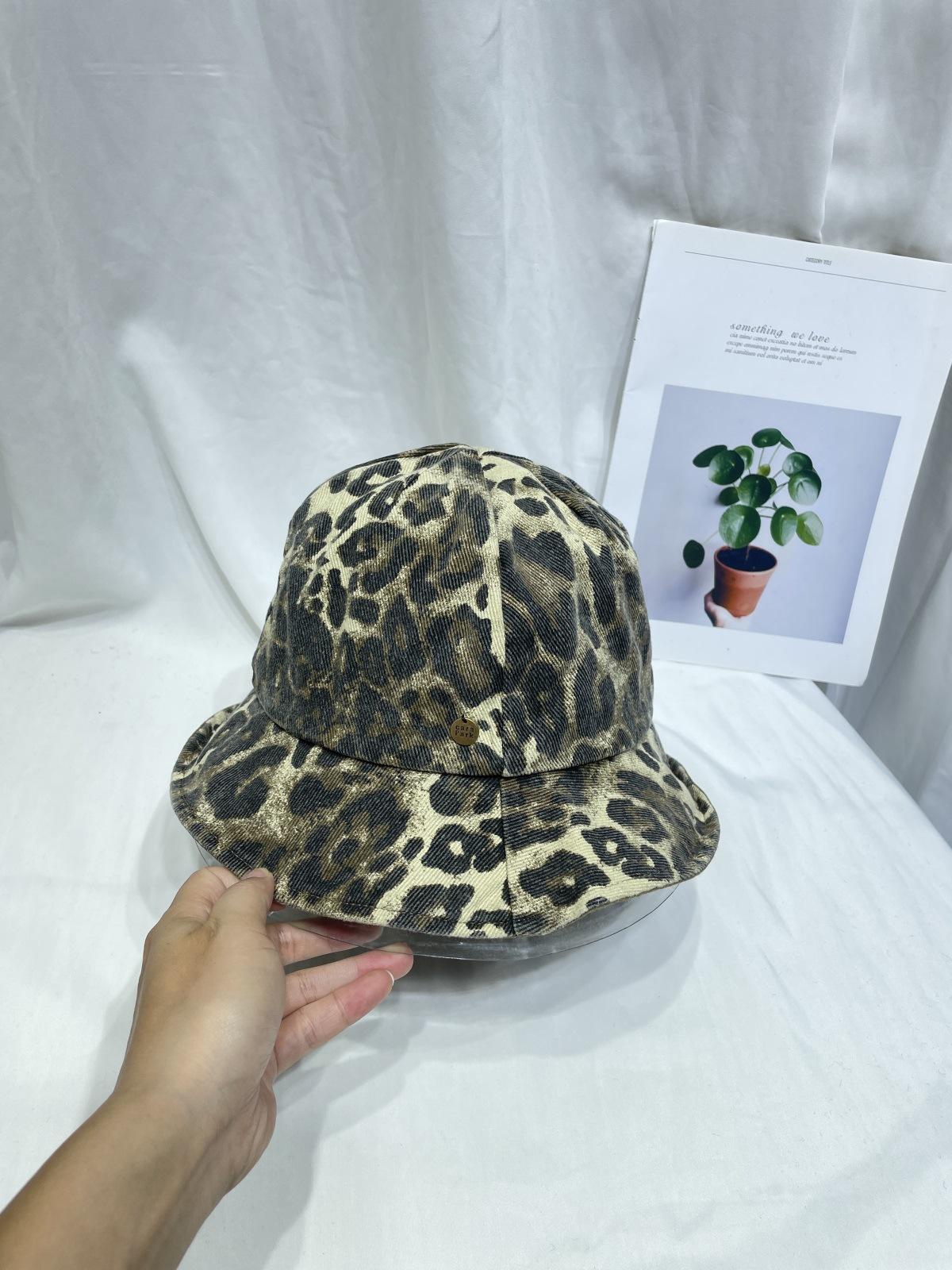 Sombrero de Pescador con Estampado de Leopardo de Doble Cara para Mujer Primavera y Otoño Estilo Japonés Retro Moda Rostro Mostrando Pequeño Domo Casual Sombrero para el Sol