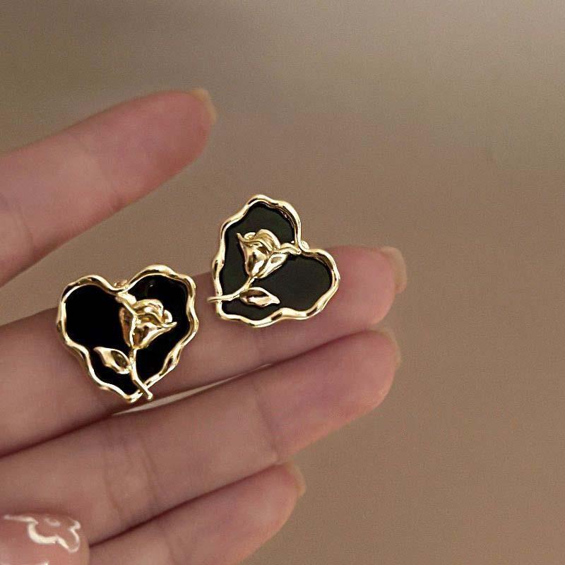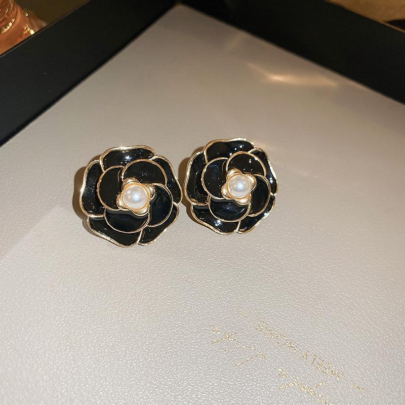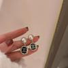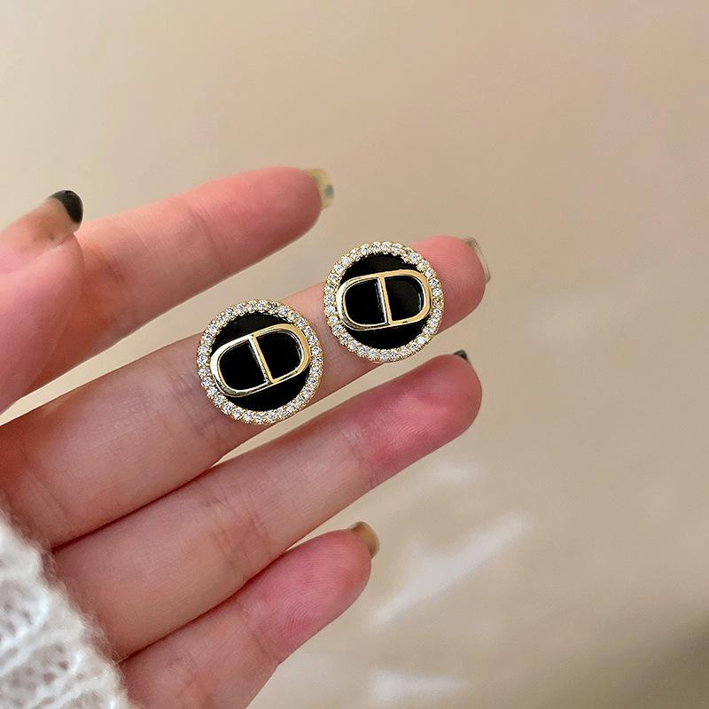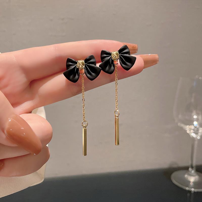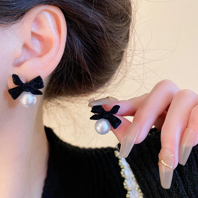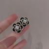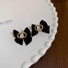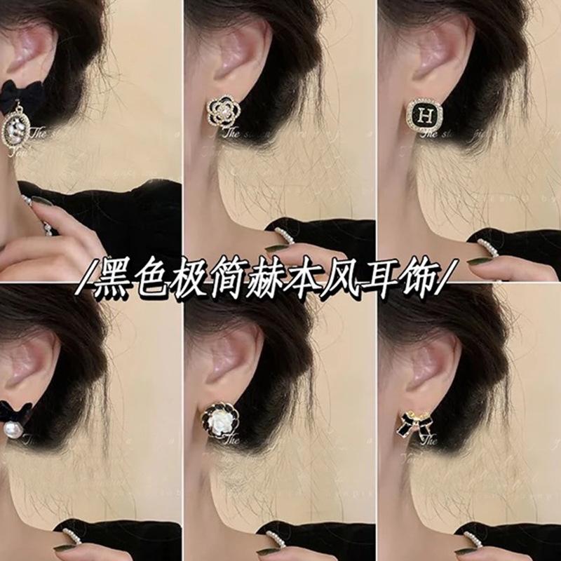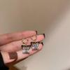 Pendientes de plata con lazo de flores y diamantes estilo francés Hepburn, elegantes pendientes pequeños estilo Chanel, con atmósfera de otoño e invierno.