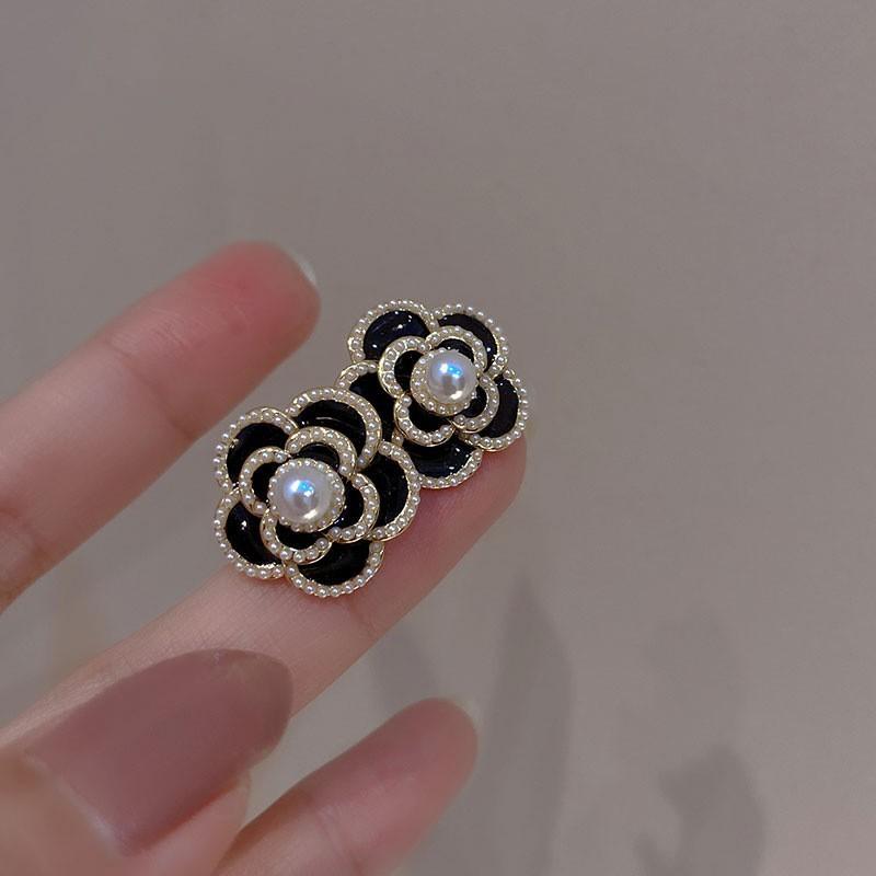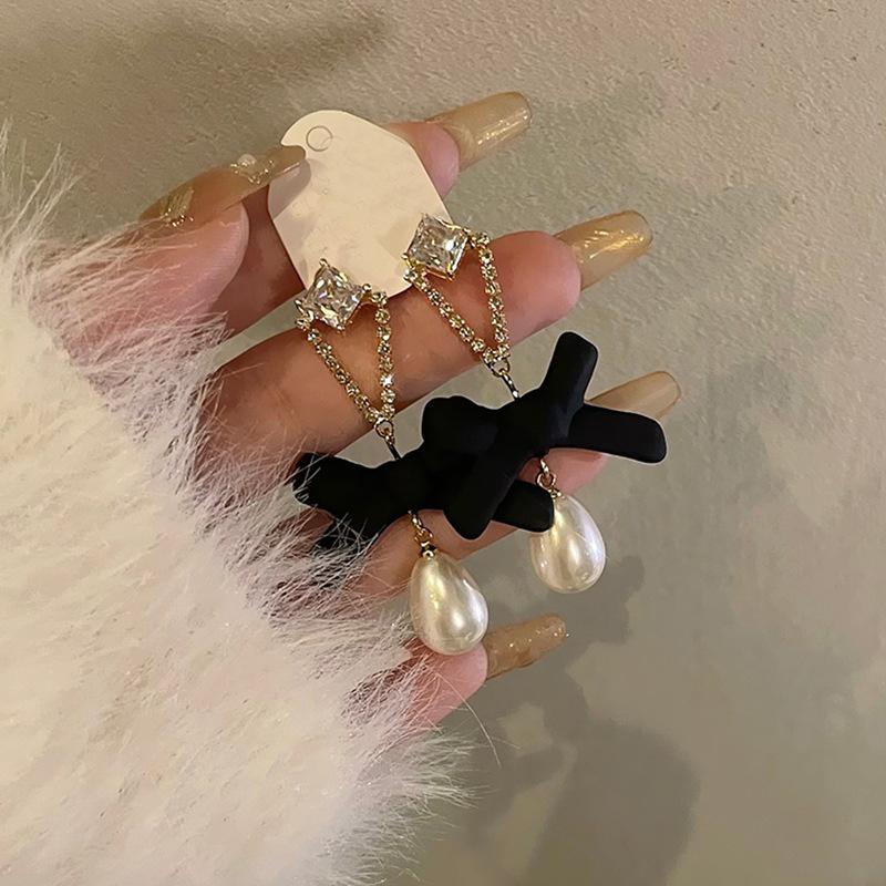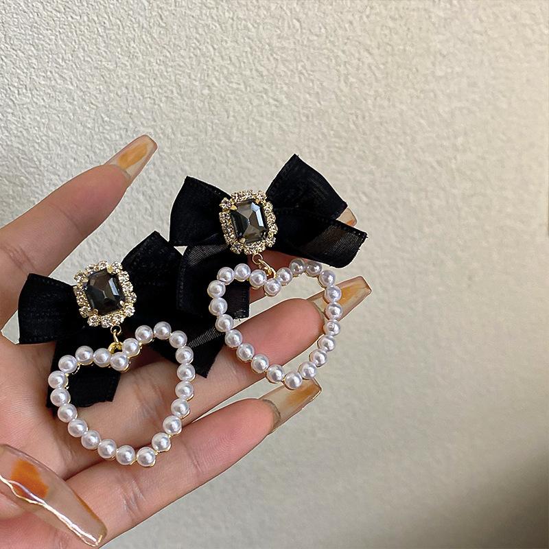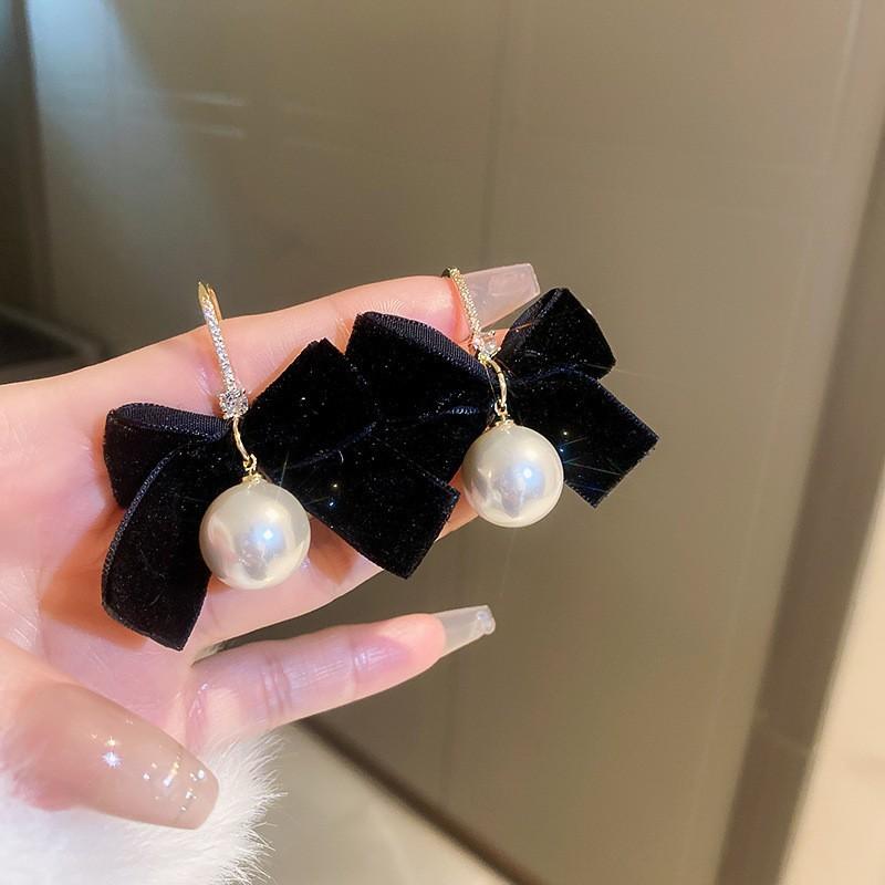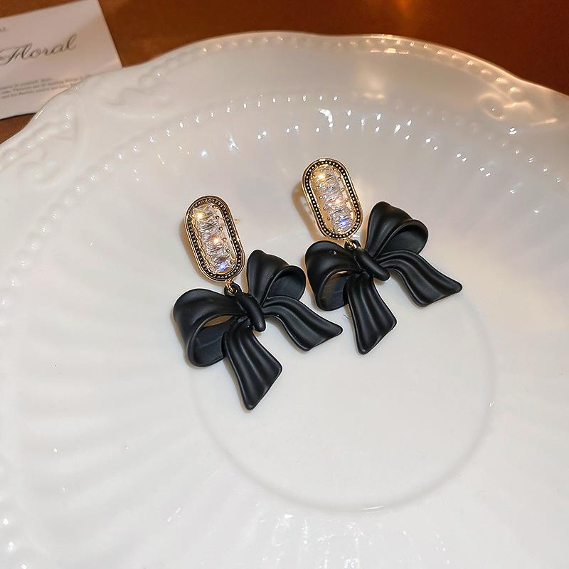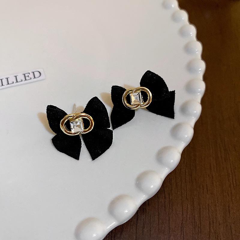 Compra Pendientes de plata con lazo de flores y diamantes estilo francés Hepburn, elegantes pendientes pequeños estilo Chanel, con atmósfera de otoño e invierno. al por mayor en Joom.pro