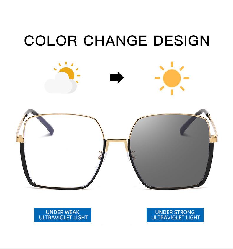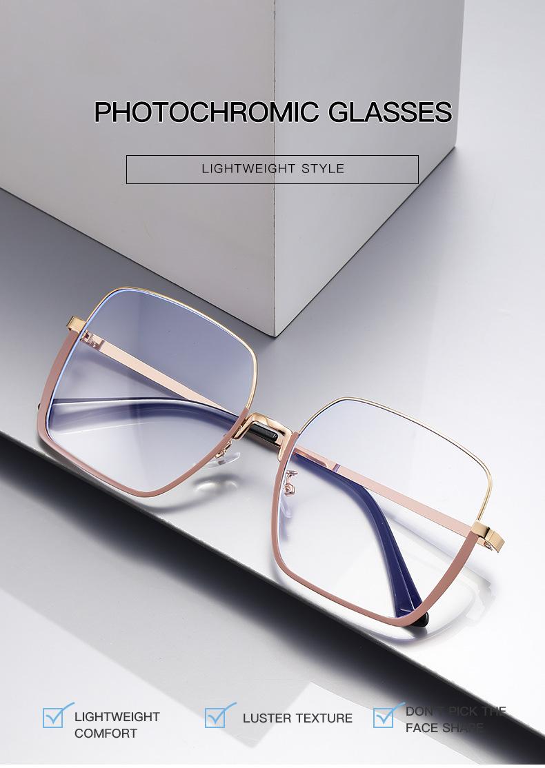 Nuevos Lentes Metálicos de Montura Grande que Cambian de Color Anti-luz Azul, Modernos y de Moda, de Alto Nivel, Marco de Lentes Personalizado para Mujer, Lentes Planos