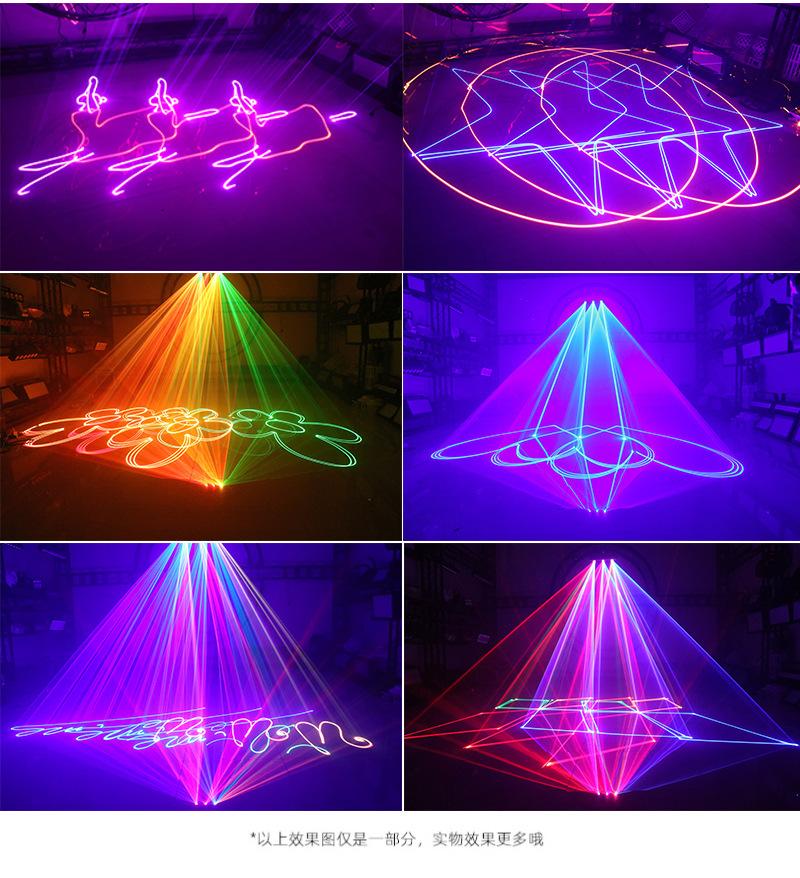 Luz Láser de Escaneo de Tres Cabezales Cuadrada para Habitación Bar Activada por Voz Luz de Haz a Todo Color Luz Láser de Animación para Actuación en Escenario