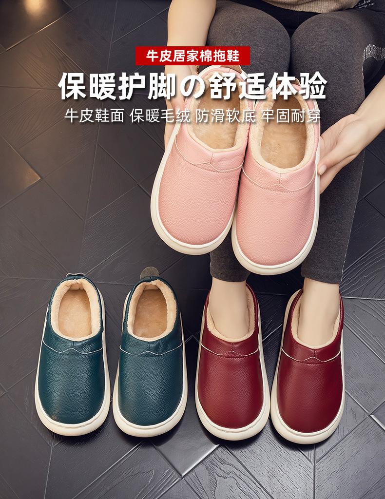 Compra Zapatillas de Algodón de Cuero Genuino para Uso Doméstico de Otoño e Invierno para Hombres y Mujeres para Interior Antideslizantes Bolsas y Hogar Parejas Cálidas Zapatos de Algodón de Cuero Vacuno al por mayor en Joom.pro