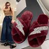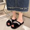 Pantuflas Cross Mao Mao para mujer, otoño 2024, planas, cálidas, con diamantes de imitación, estilo coreano, a la moda, para exteriores.