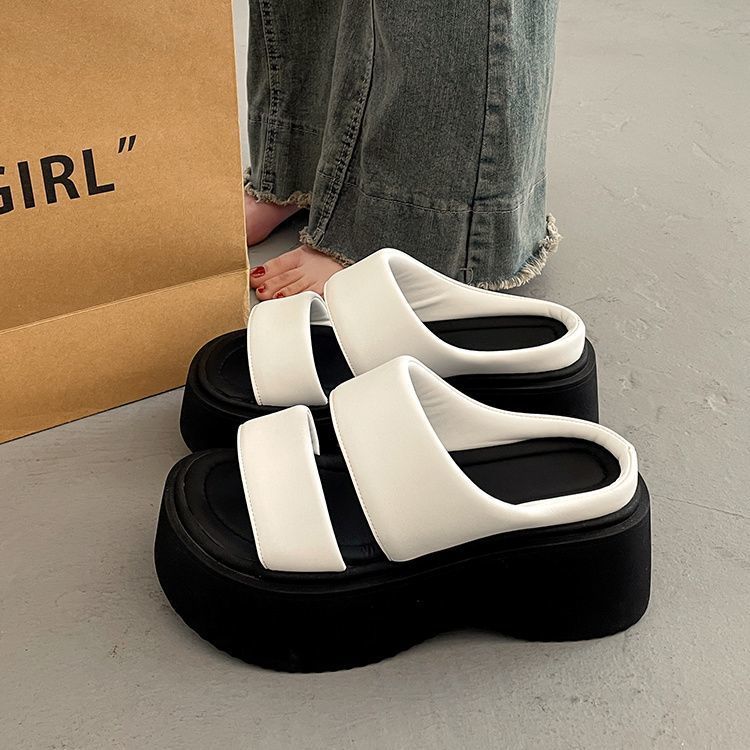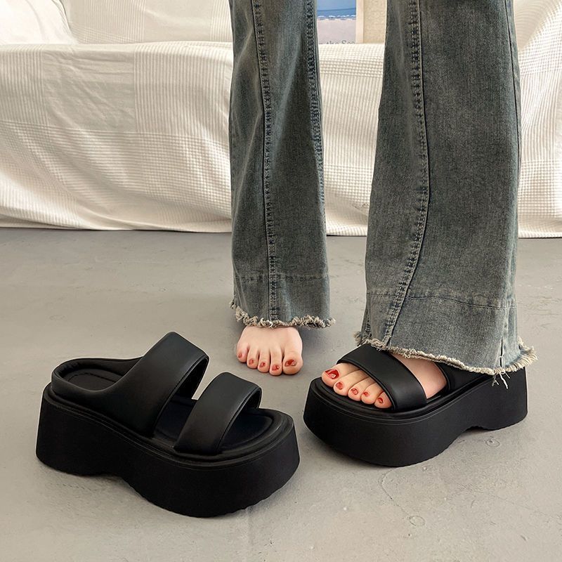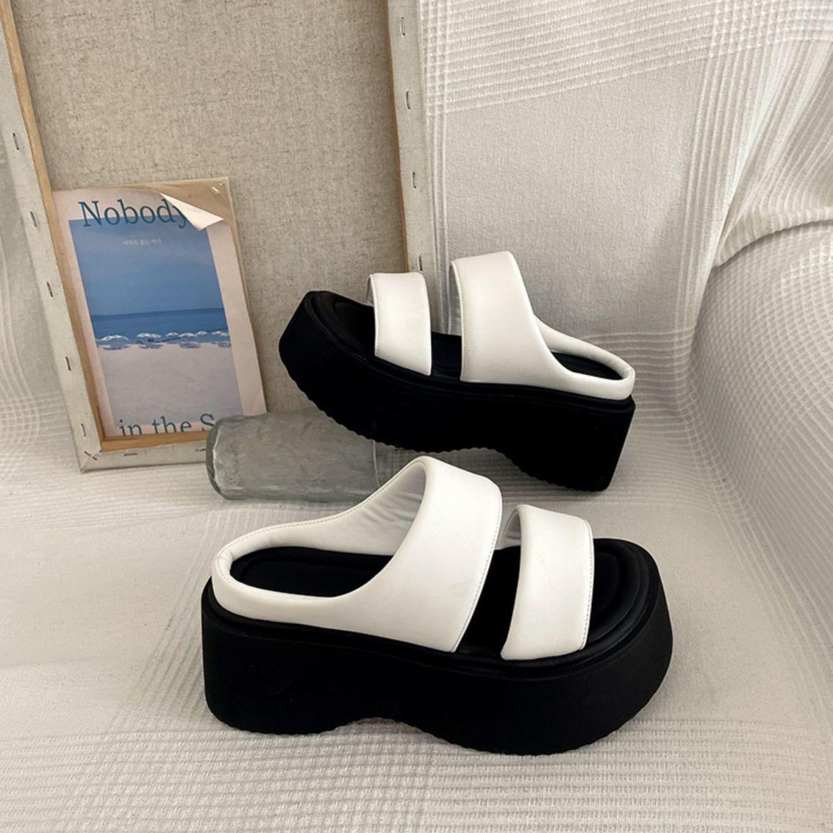 Evening Breeze Pantuflas Elegantes de Punta Descubierta para Mujer 2024 Estilo Coreano Elevado Estilo Extranjero Pantuflas para Exterior Sandalias Antideslizantes