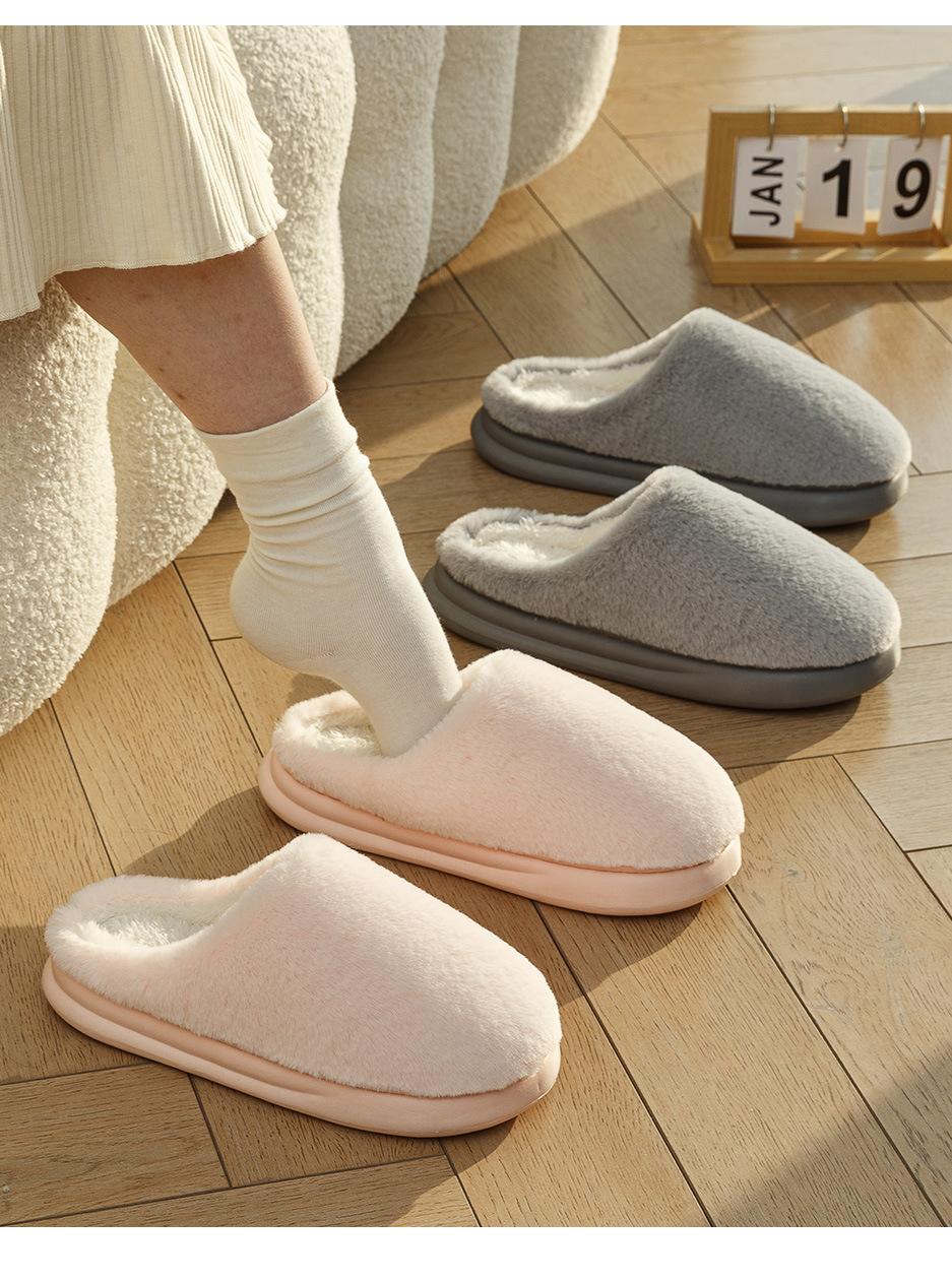 Zapatos de Confinamiento Cálidos y Suaves de Suela Blanda para Dormitorio Hogar, Pantuflas de Algodón para Mujer Cómodas de Felpa Simples de Color Puro, Otoño e Invierno Antideslizantes