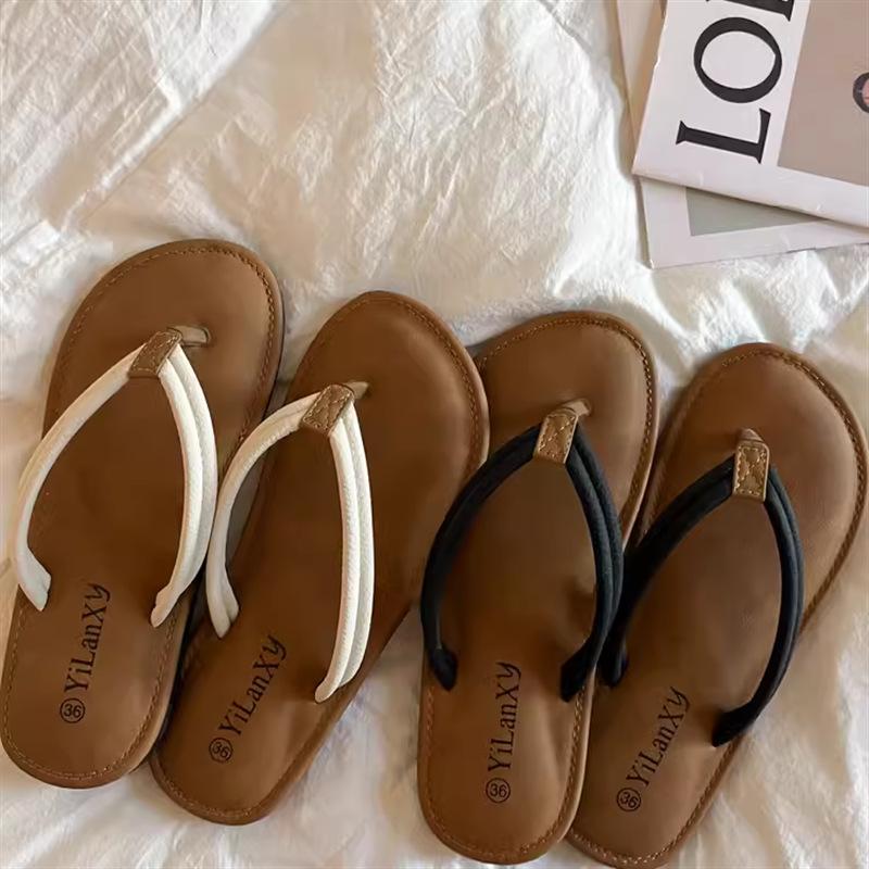 Vestido Negro Explosiones Clip de Playa Sandalias Planas para Mujer Verano 2023 Nuevo Estilo Hada Zapatillas Celebrando Internet