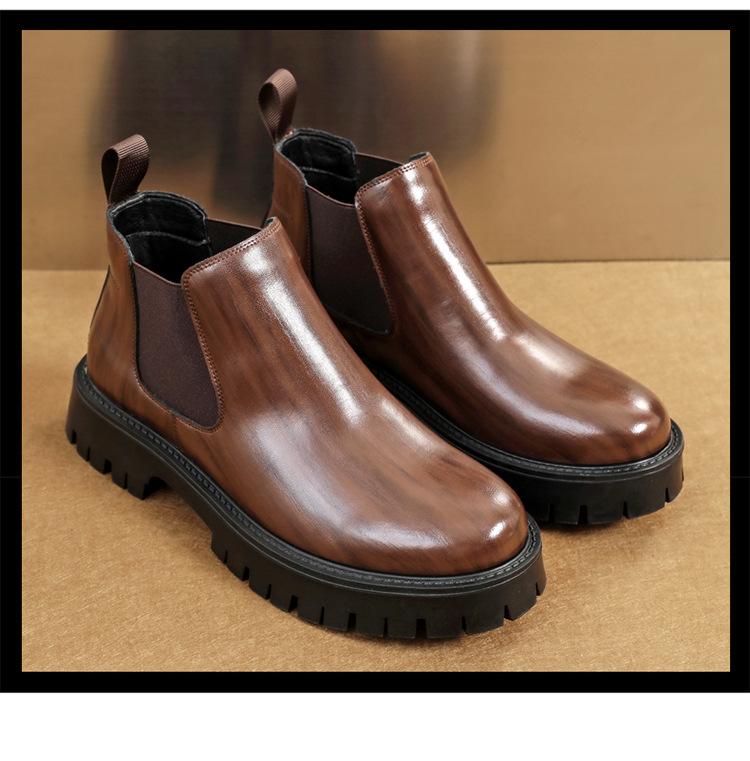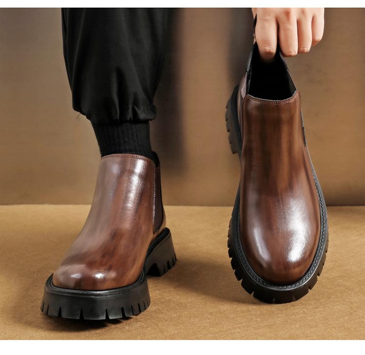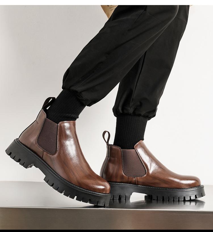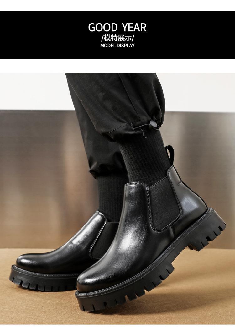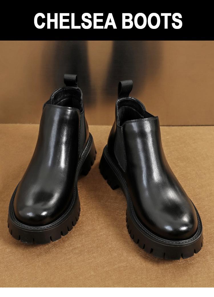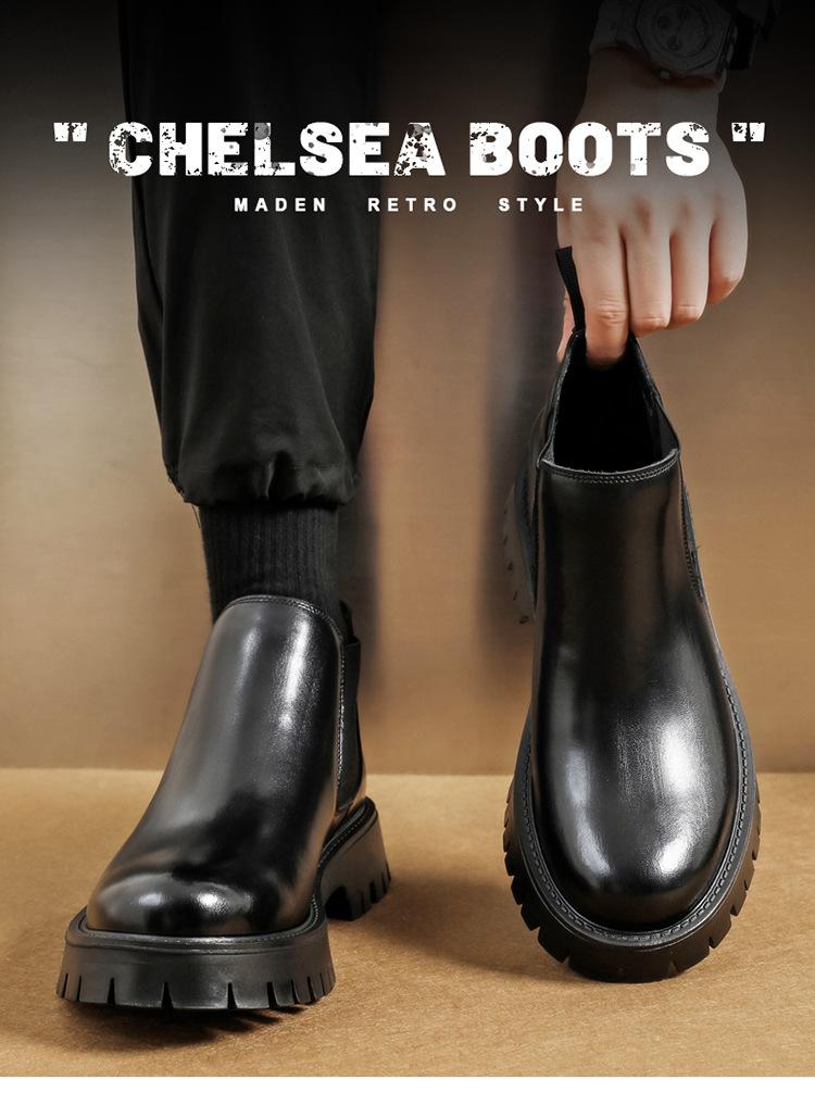 Botas Chelsea Transfronterizas Botines para Hombre 2025 Nuevas Botas de Trabajo Británicas Botas de Suela Gruesa Botas de Cuero de Caña Alta a la Moda