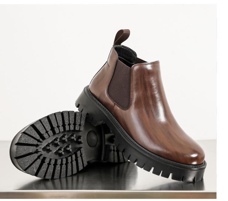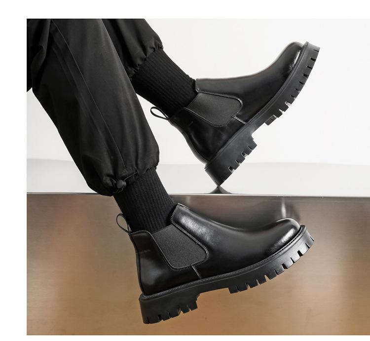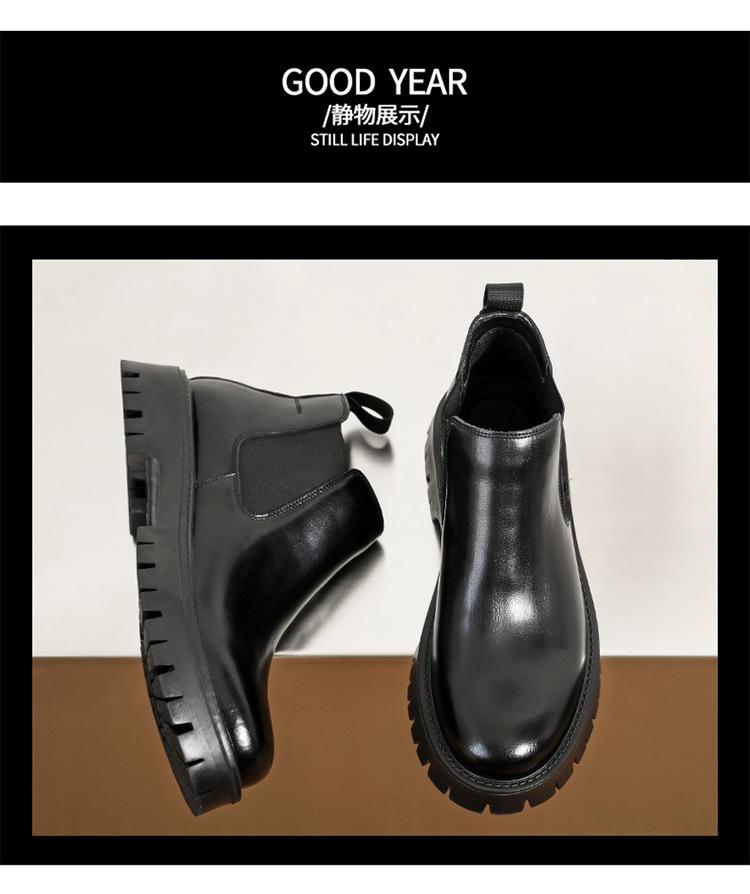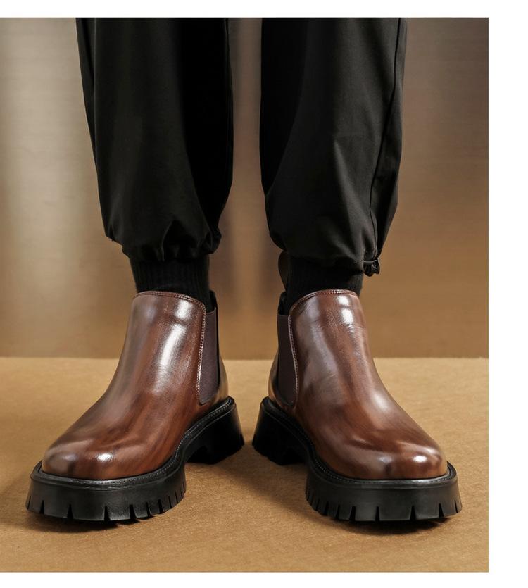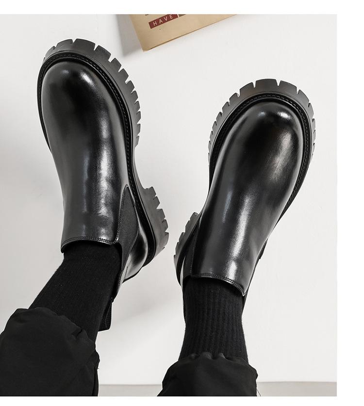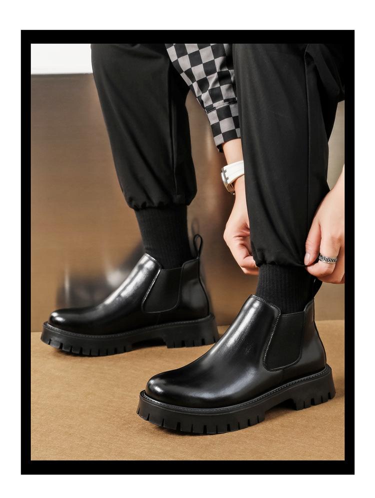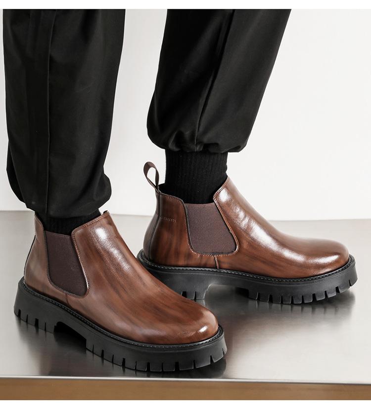 Botas Chelsea Transfronterizas Botines para Hombre 2025 Nuevas Botas de Trabajo Británicas Botas de Suela Gruesa Botas de Cuero de Caña Alta a la Moda