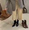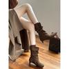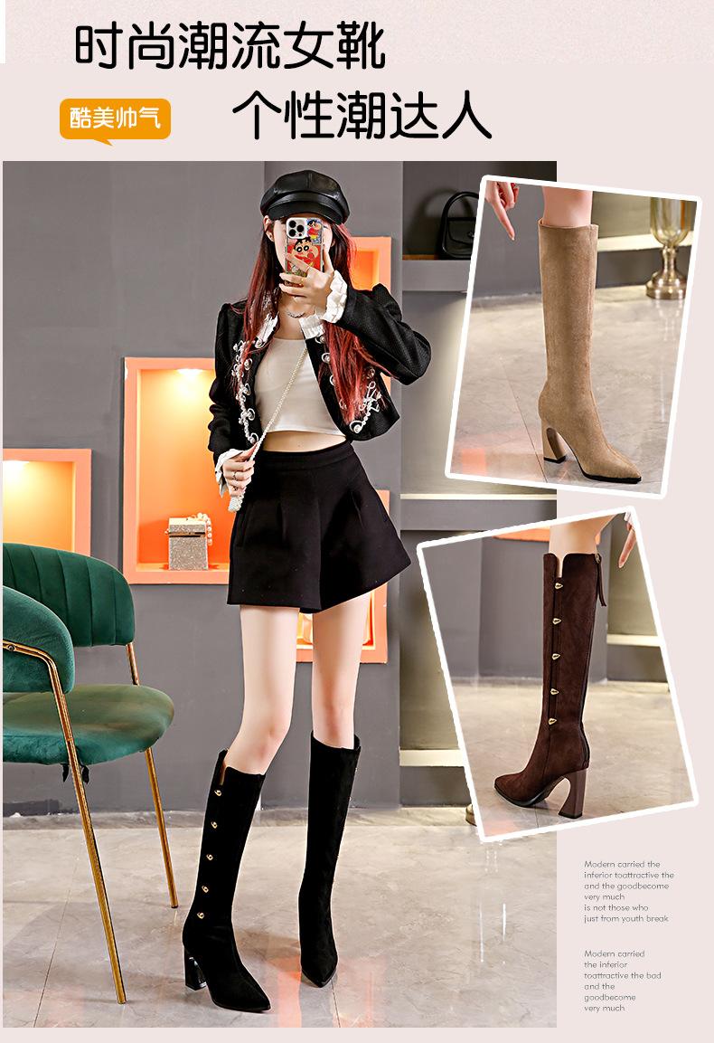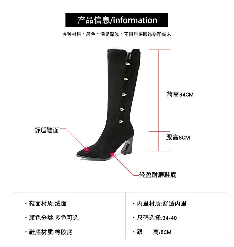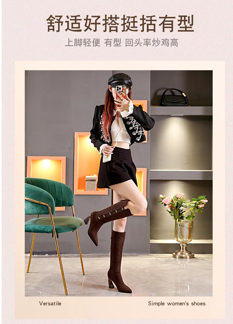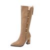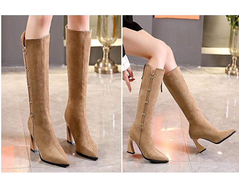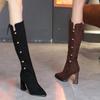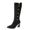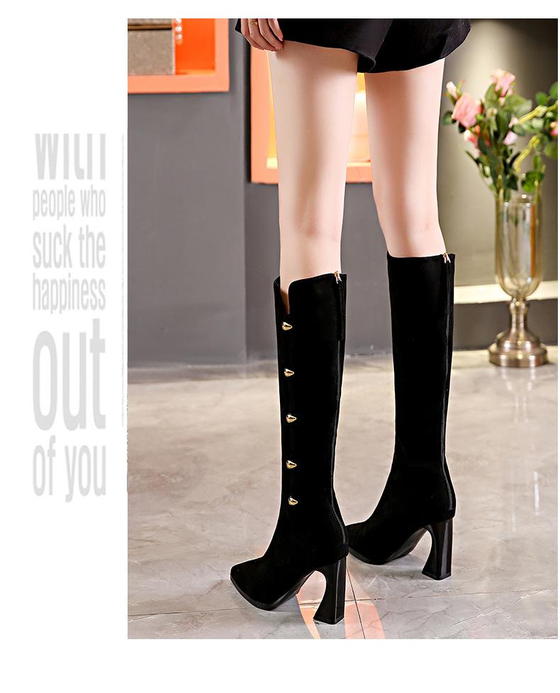 Botas de tacón alto hasta la rodilla para mujer, nuevas botas de moda de tacón grueso con cremallera trasera y hebilla de metal, botas que combinan con todo, otoño e invierno.