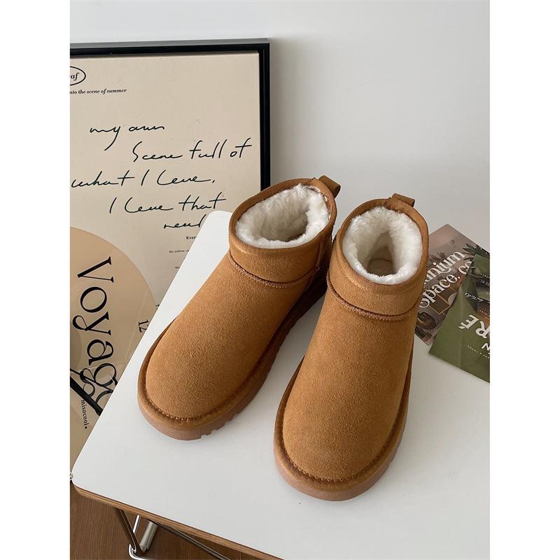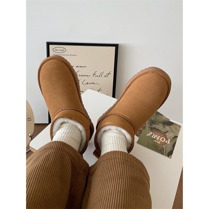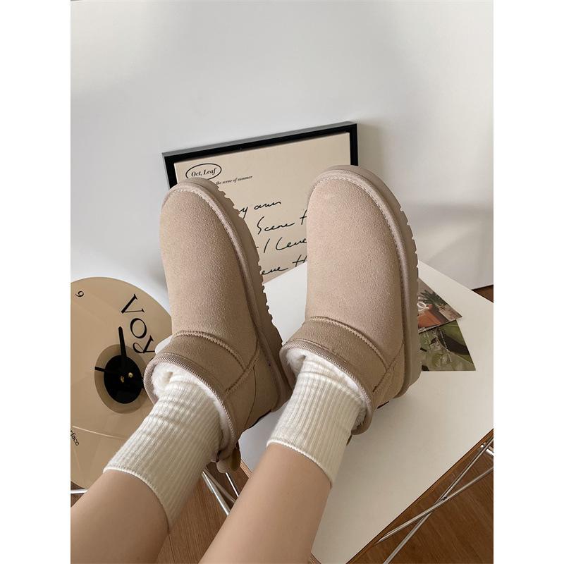 Botas de nieve de piel para mujer 2023 nuevo invierno suela gruesa celebridad de internet cálidas con forro polar grueso ropa exterior gruesa zapatos de algodón