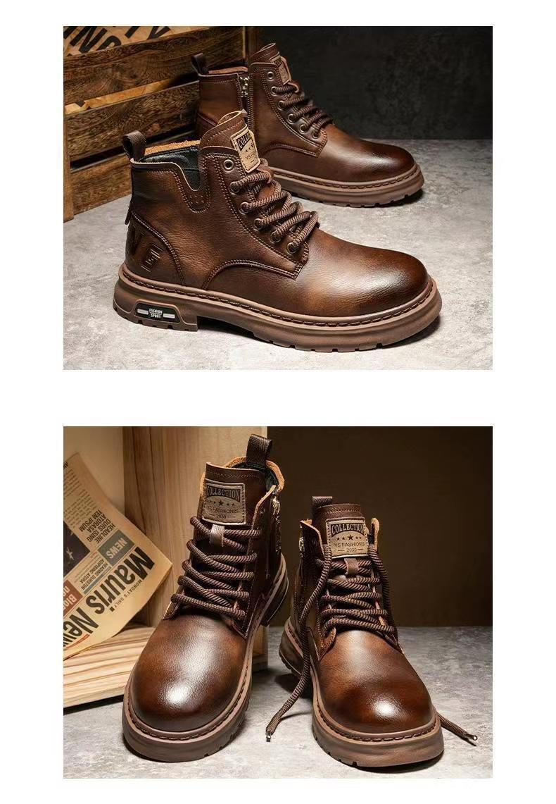 Botas Martin para exteriores para hombre, otoño e invierno, nuevas botas de cuero de moda, estilo británico, botas cortas retro, zapatos altos con cordones para hombre.