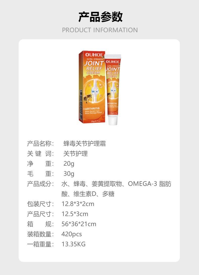 Crema OUHOE para el cuidado de las articulaciones con veneno de abeja, alivia el dolor muscular en hombros, cuello, rodillas y muñecas. Crema para el cuidado de las articulaciones y el cuerpo.