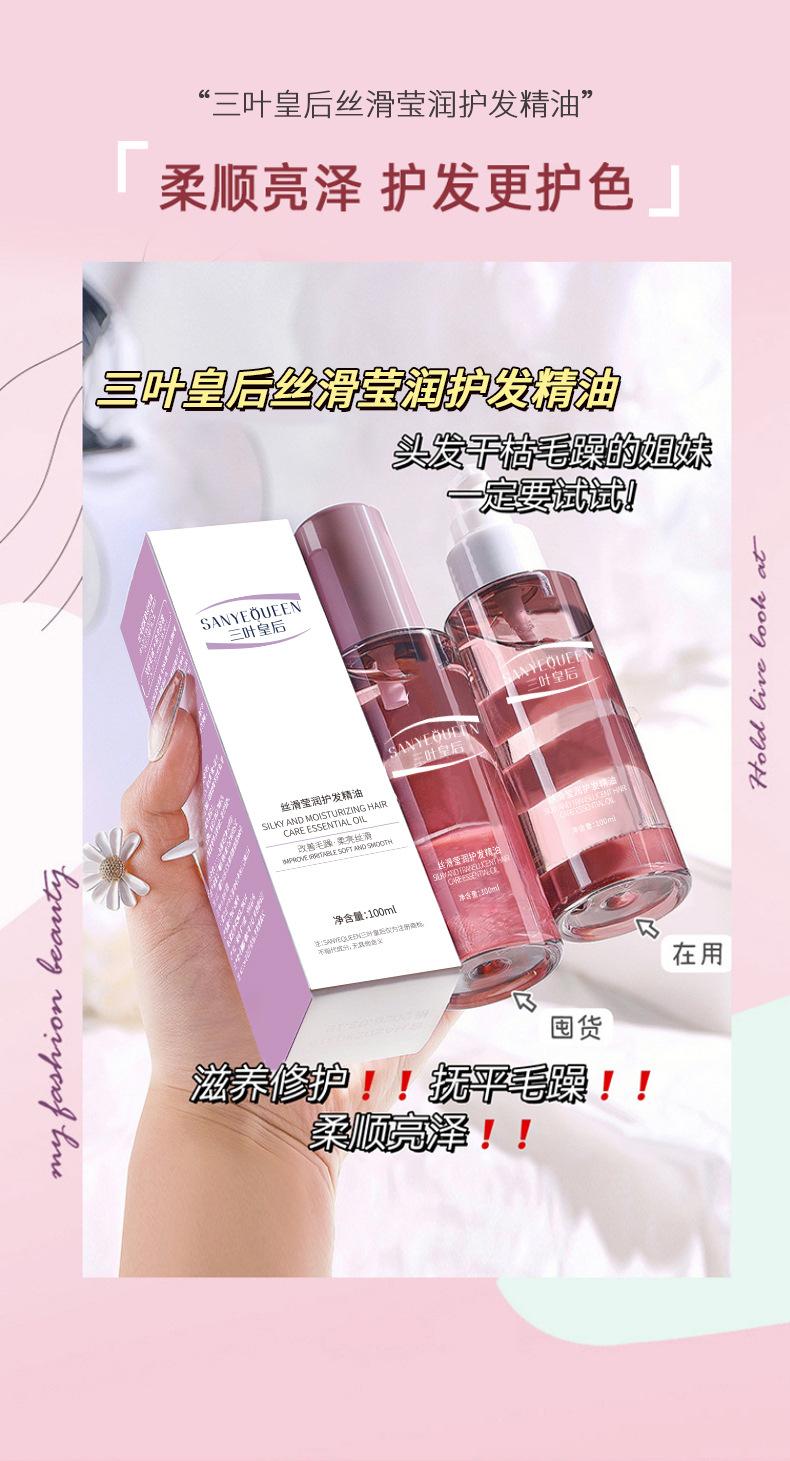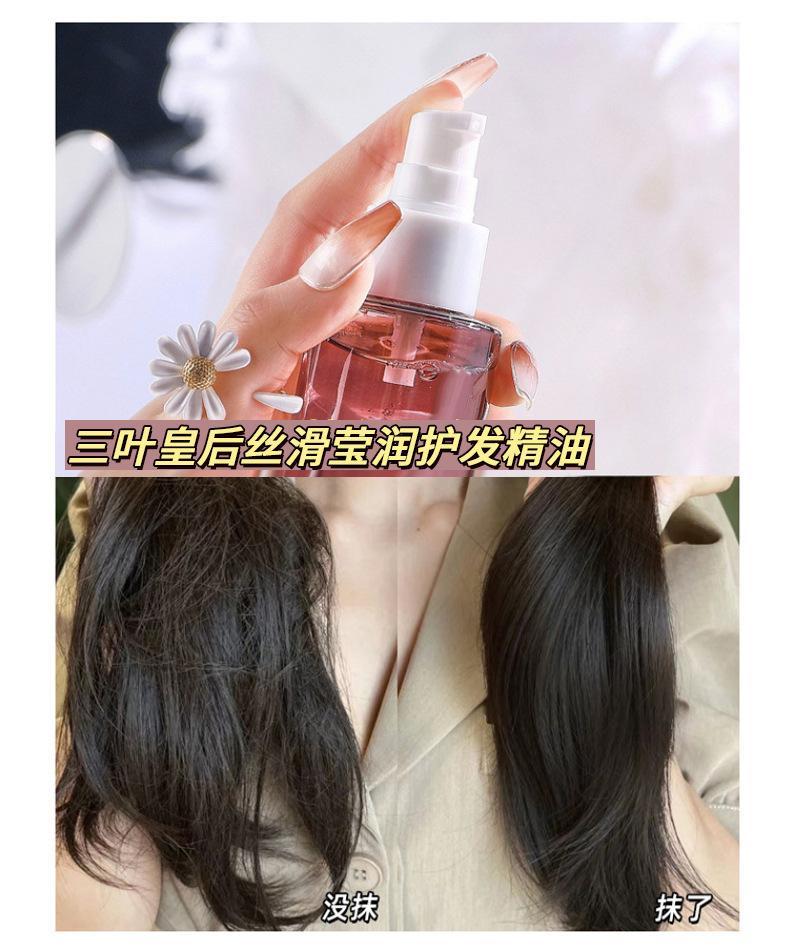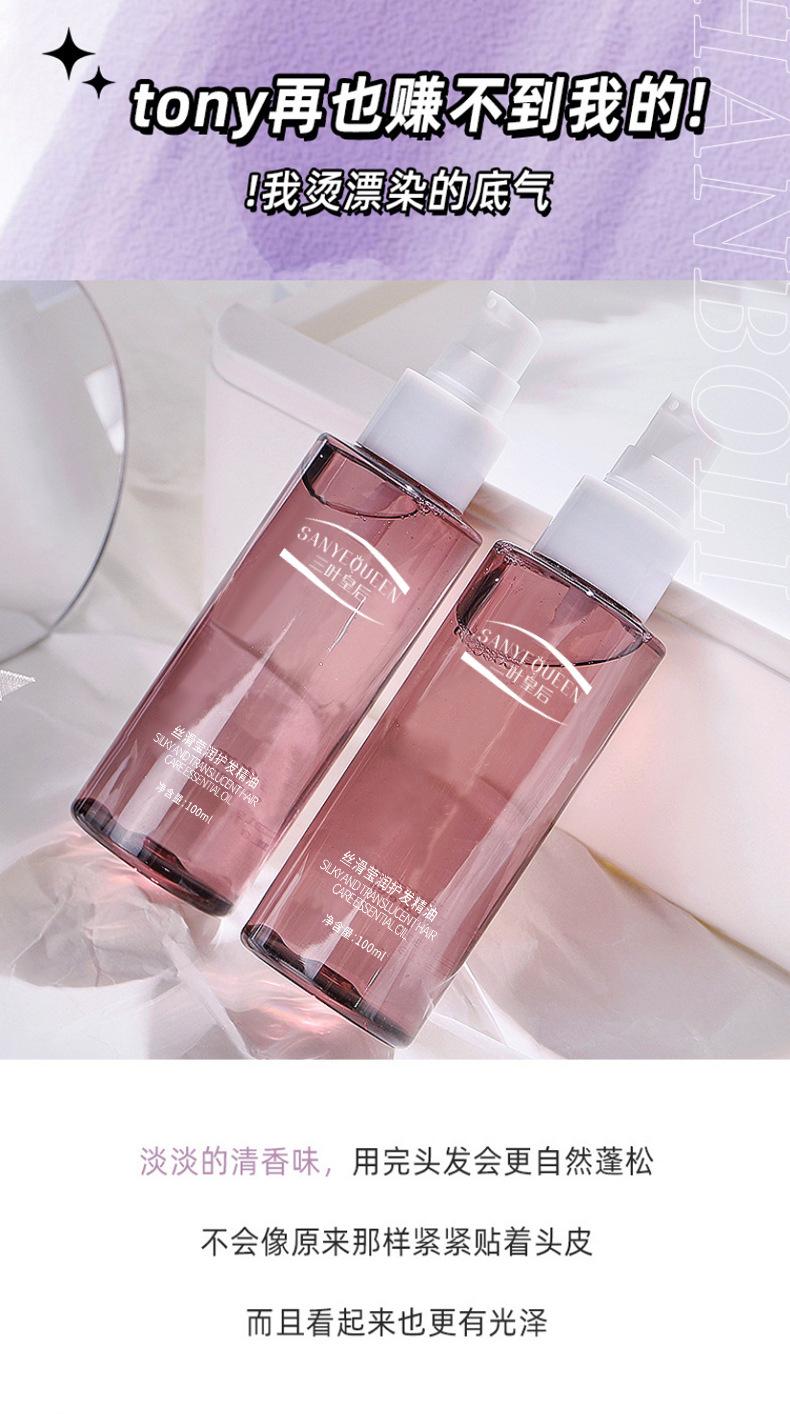 Esencia iluminadora para el cuidado del cabello con fragancia de Reina de Tres Hojas, anti-frizz seco, cabello iluminador, fragancia suave y duradera, cuidado refrescante del cabello.