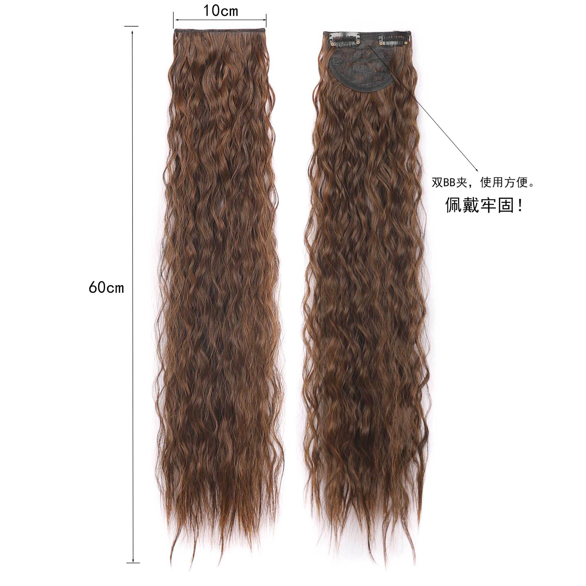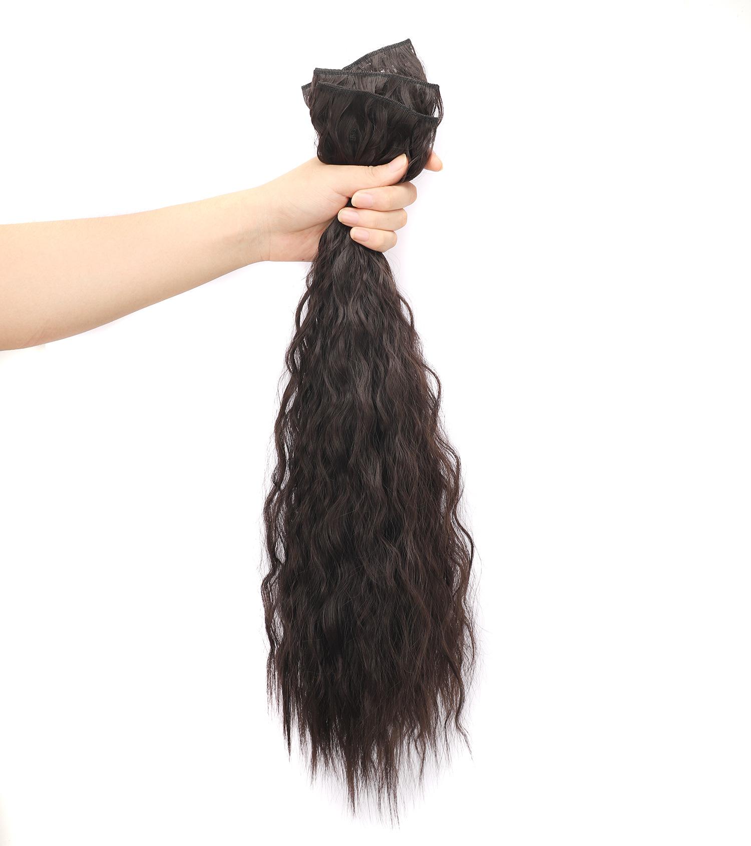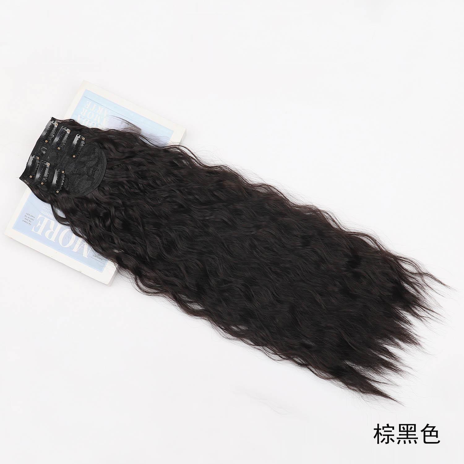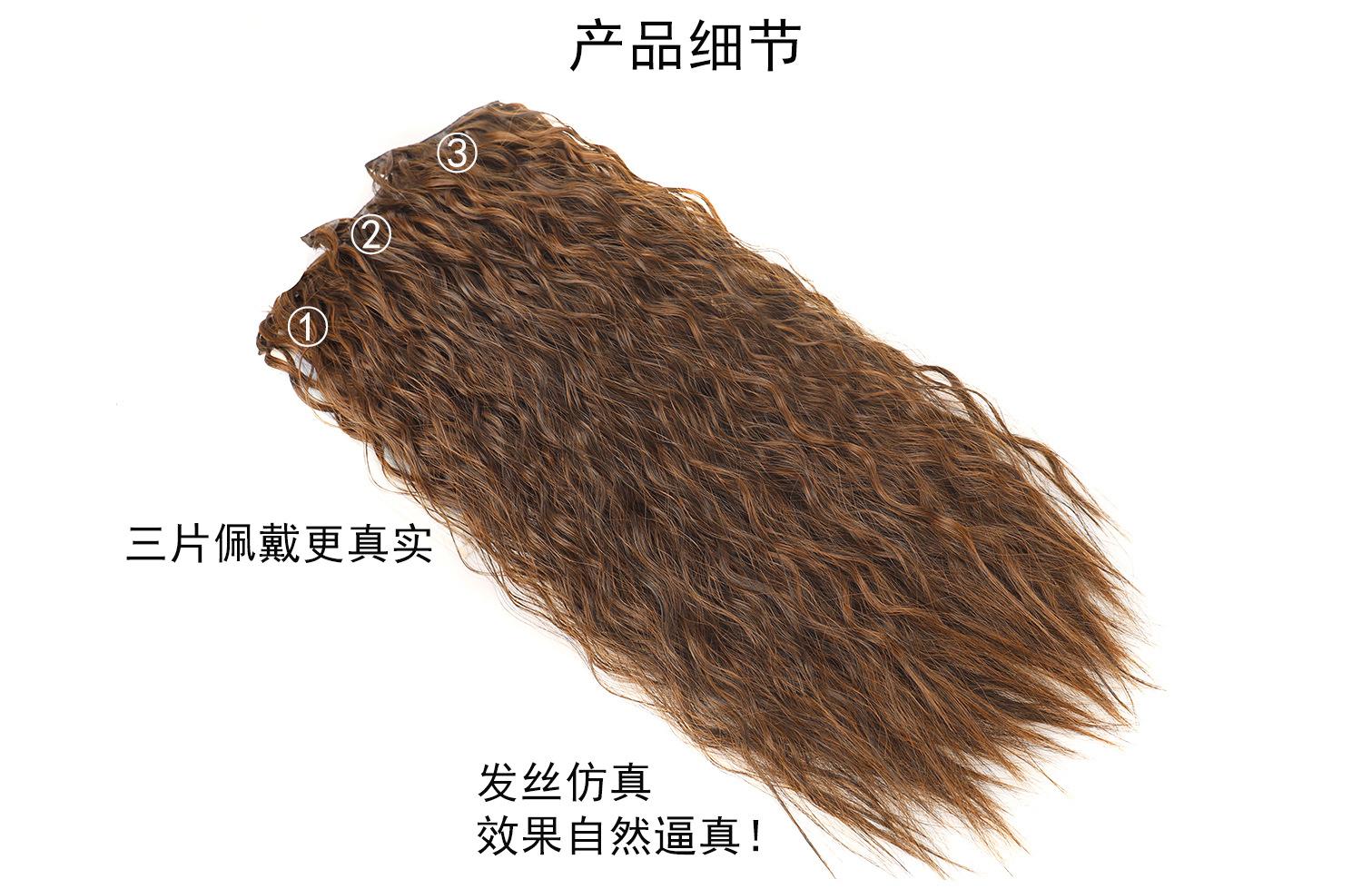 Nombre del Producto: Peluca de Maíz Permanente para Mujer de Comercio Exterior de Tres Piezas Clip-in Trama Extensión de Cabello Rizado Aumento de Volumen de Cabello Set de Tres Piezas Trama de Extensión de Cabello