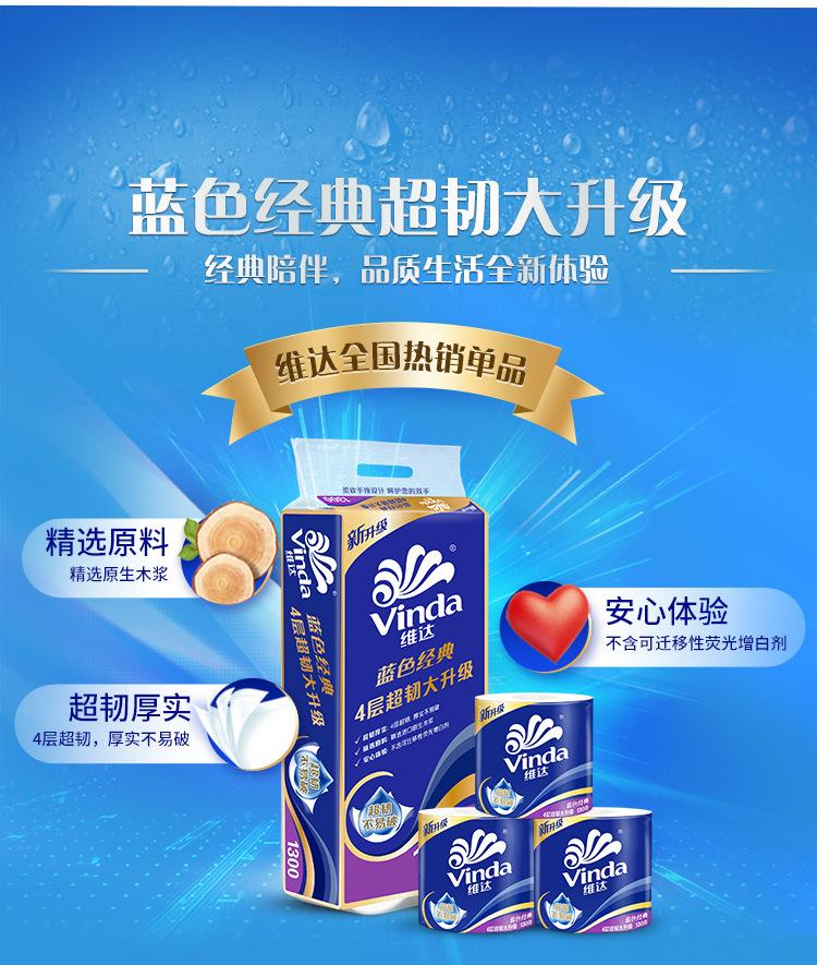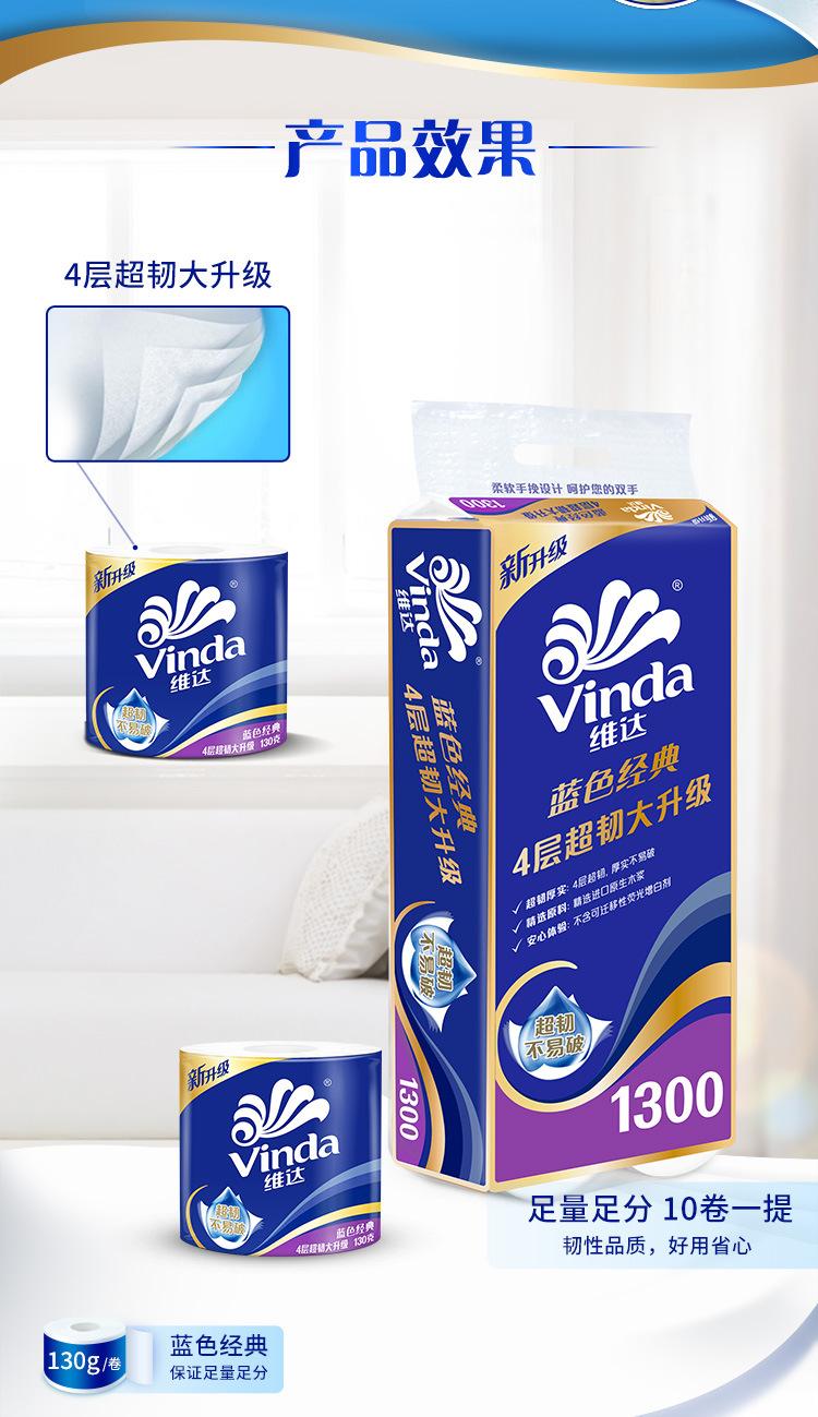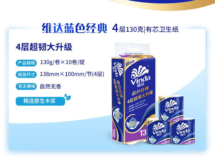 Papel Higiénico Vinda Rollo Azul Clásico con Centro 4 Capas 130g Papel Higiénico Doméstico Papel Higiénico Asequible Toallas de Papel
