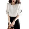 Compra Camisa de Chifón de Manga Corta con Cuello Redondo y Lazo Empalmado para Mujer 2025 Verano Nuevo Estilo Elegante y con Estilo Profesional Versátil Top al por mayor en Joom.pro