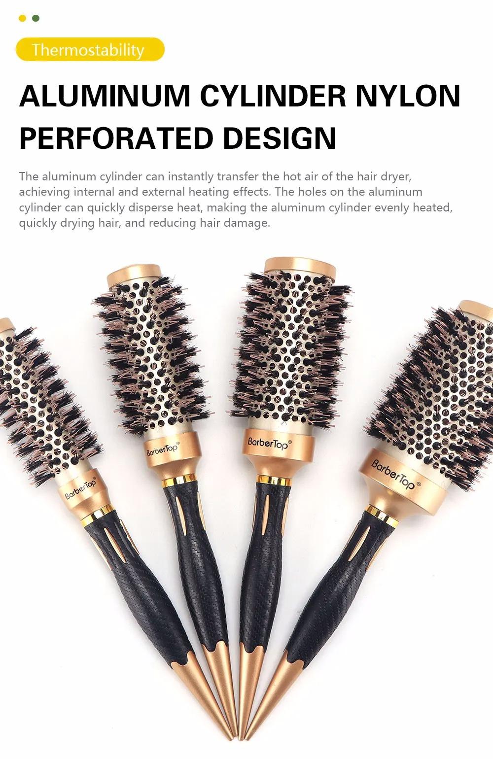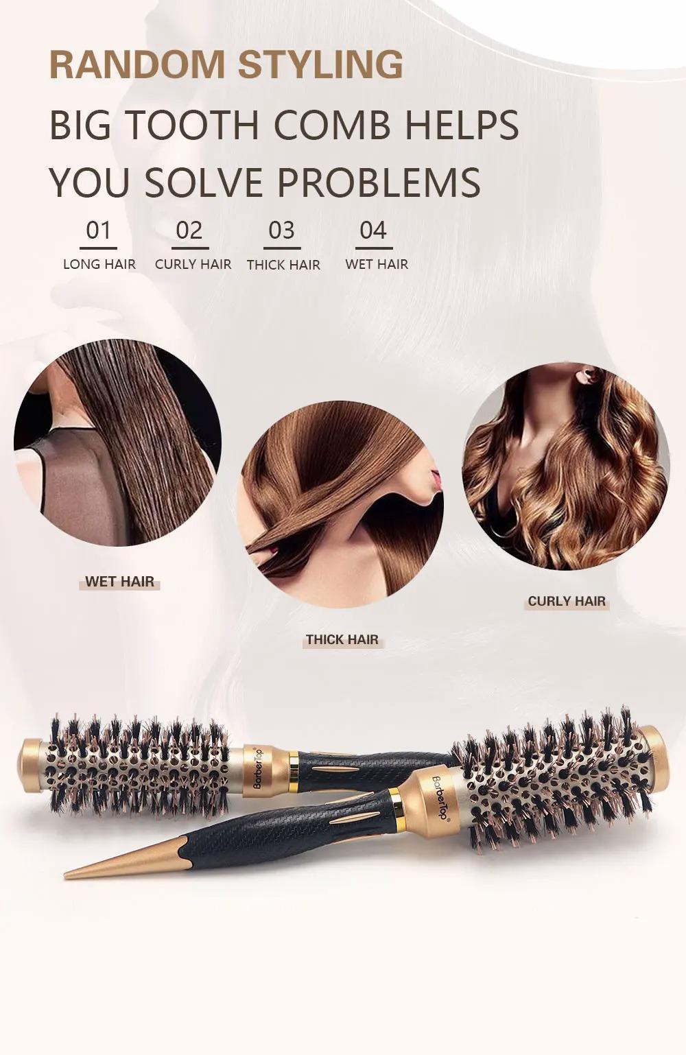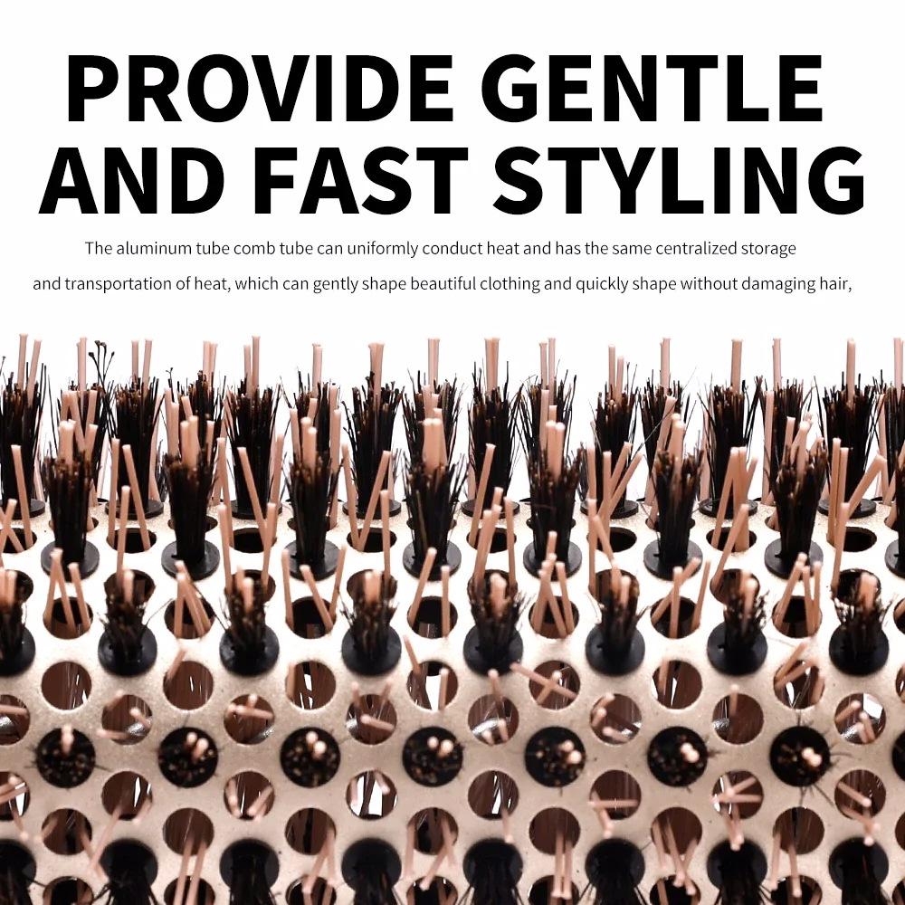 Peine cilíndrico profesional transfronterizo para cabello rizado, forma de peine, peine de cerámica con cerdas de aire y conducción de calor doradas.