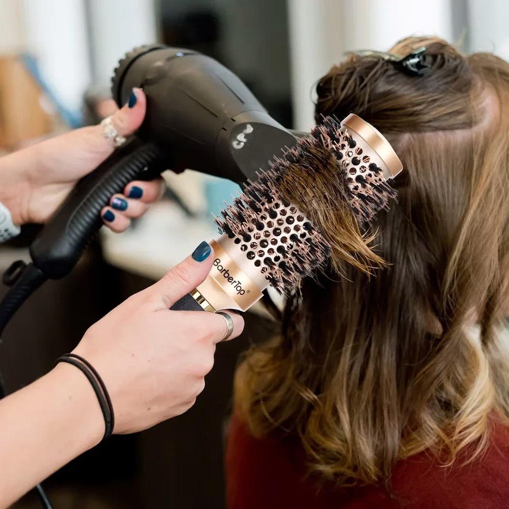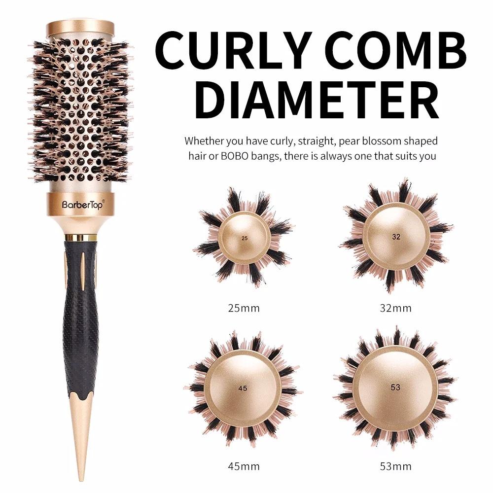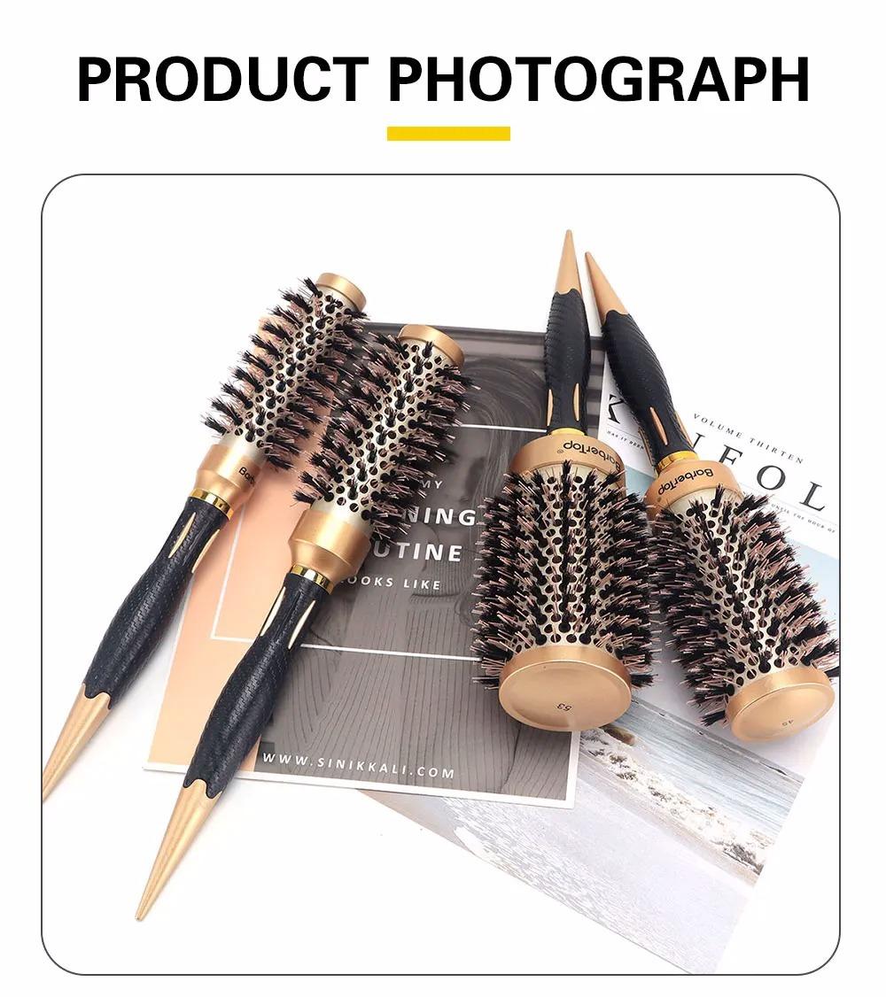 Peine cilíndrico profesional transfronterizo para cabello rizado, forma de peine, peine de cerámica con cerdas de aire y conducción de calor doradas.