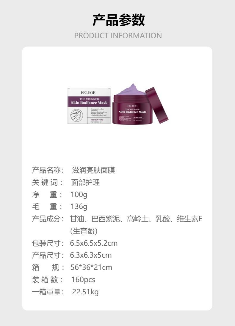 Mascarilla iluminadora de piel EELHOE Mascarilla hidratante y humectante para el rostro Mascarilla reafirmante e hidratante para el cuidado de la piel