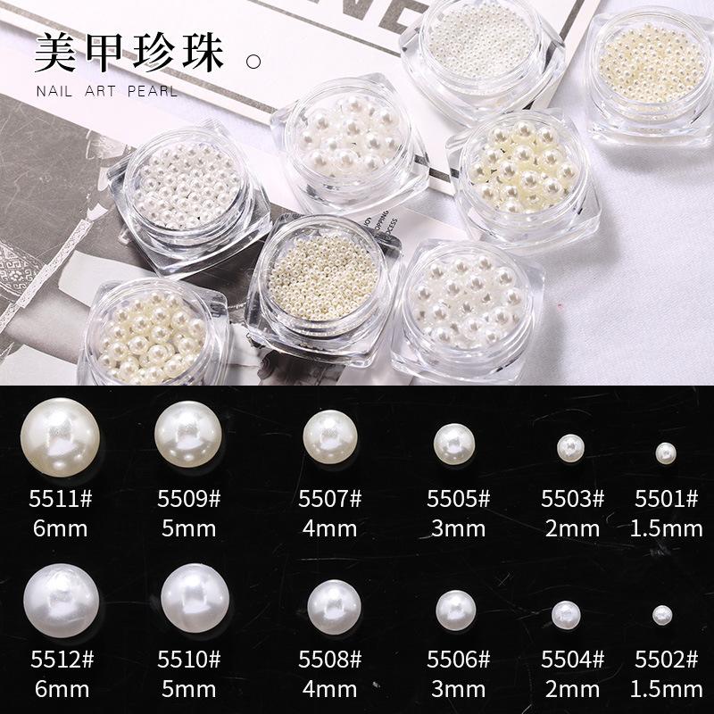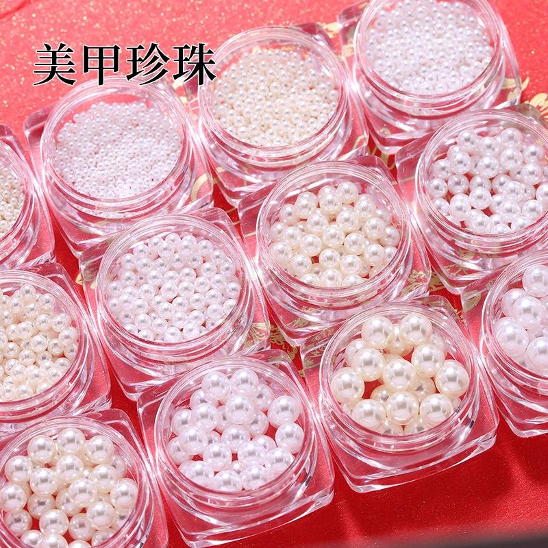 Destacado joyería de uñas de perlas blanco puro tridimensional redondo tamaño grande pequeño mini accesorios de uñas de perlas blanco cremoso al por mayor