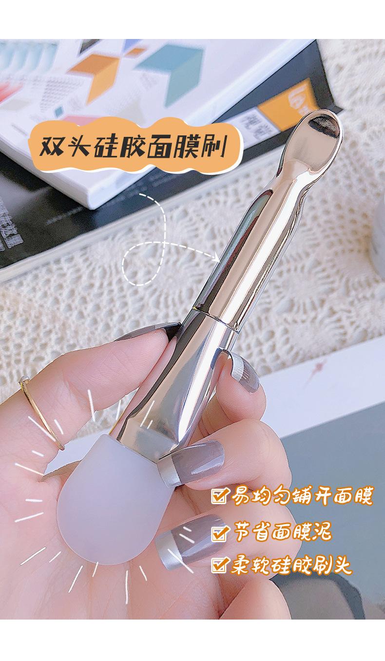 Cepillo de silicona de doble cabezal para mascarilla, cepillo de pelo suave para mascarilla con pala, herramienta multifuncional de belleza y maquillaje.