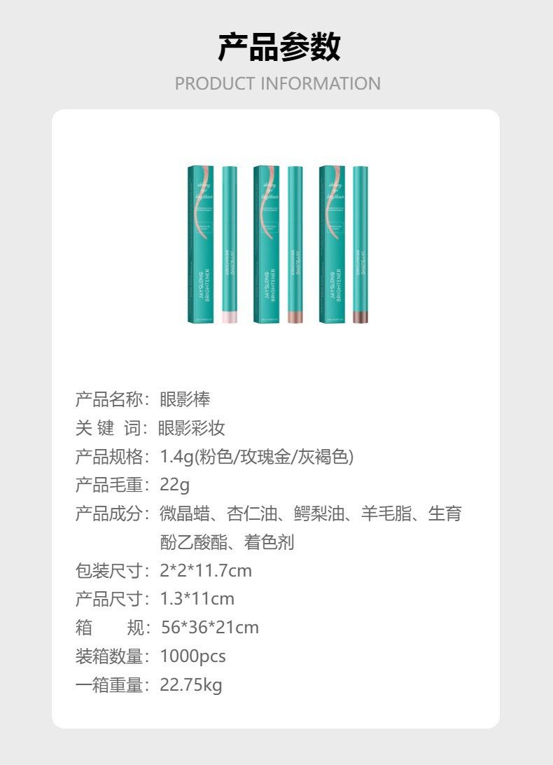 Sombra de ojos en barra Jaysuing, resistente al agua, de larga duración, fácil de colorear, fina, flash, reparable, para dormir, gusano de seda, iluminador, sombra de ojos en barra de una sola pieza.