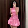 Vestido plisado con cuello redondo y costuras, nuevo vestido de verano americano de color sólido, sexy, sin mangas, con espalda descubierta, ajustado y atractivo para chicas, venta al por mayor