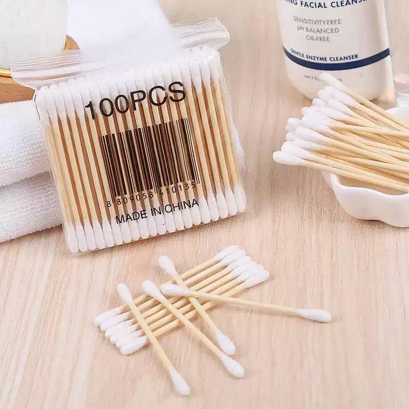 Compra Suministro al por mayor de hisopos de algodón, hisopos de algodón cosméticos de doble punta, 100 bolsas de hisopos de algodón cosméticos para maquillaje de oídos, hisopos de algodón de madera al por mayor en Joom.pro