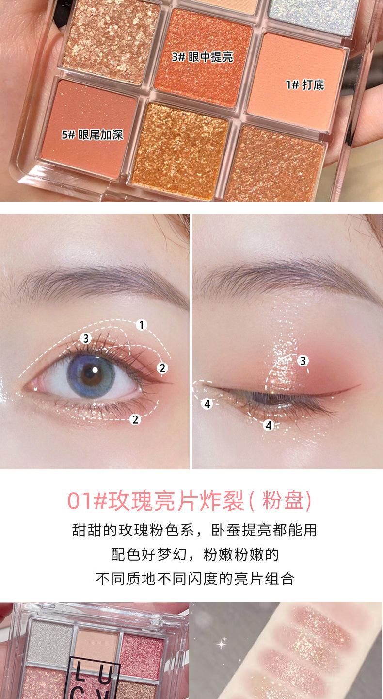 01#Rose pink, 02#Sunset orange, Chocolate nine colors, Single eye shadow brush