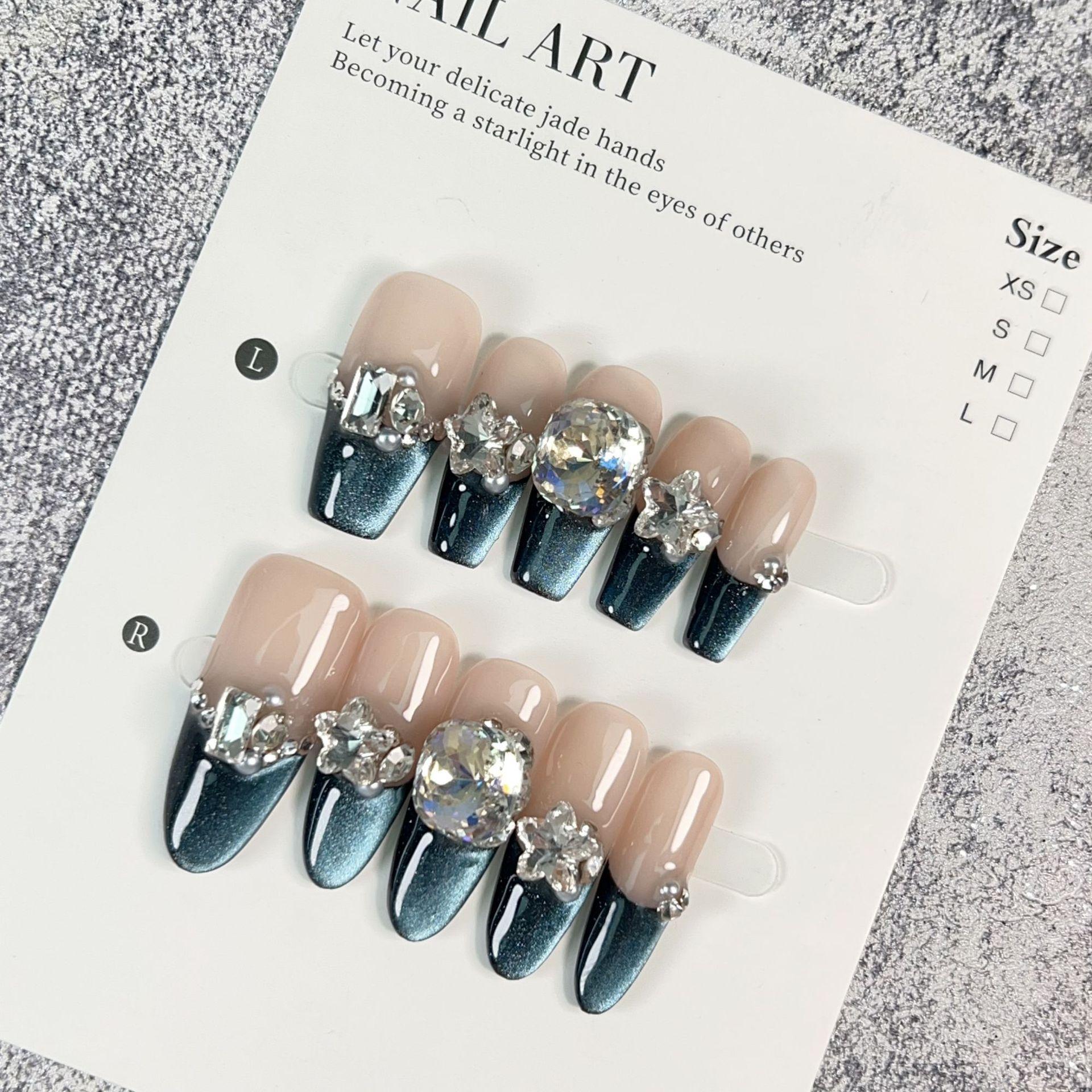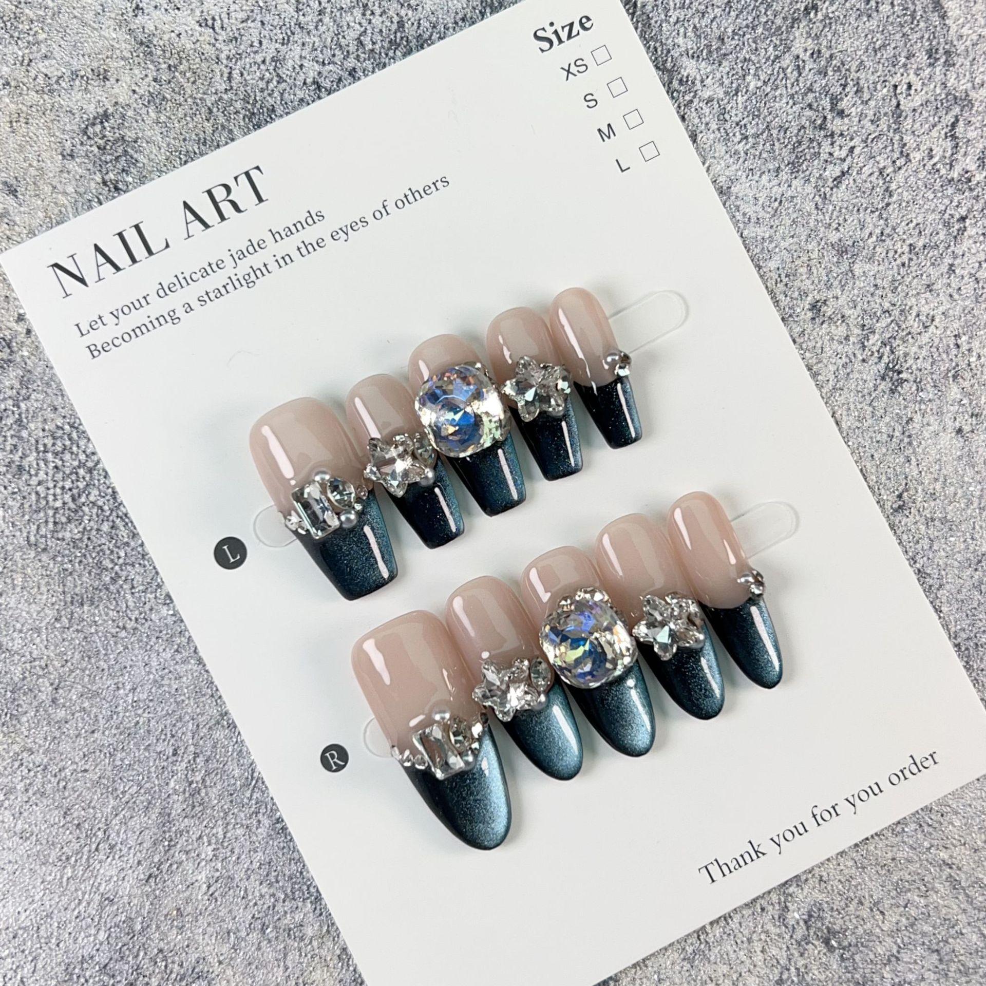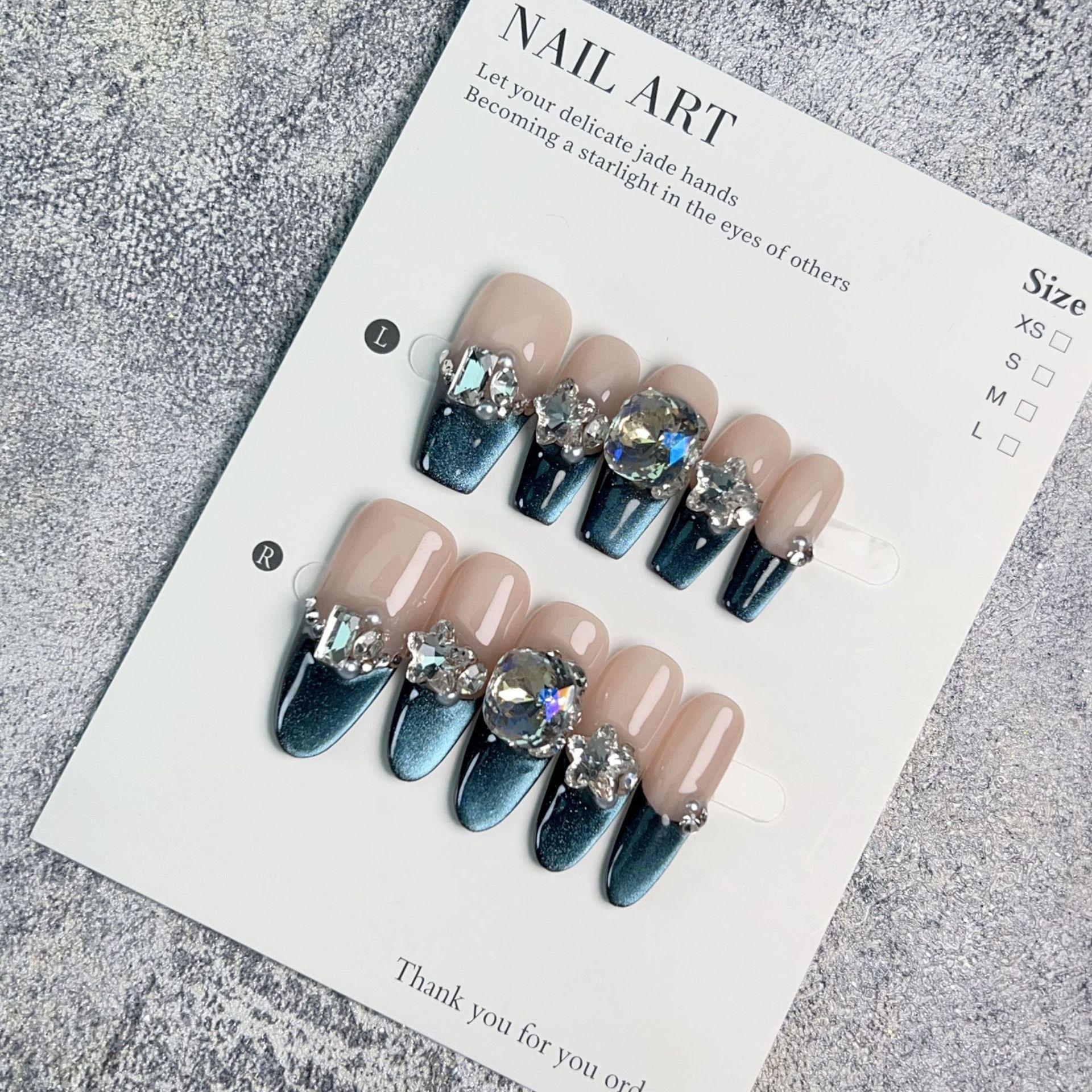 [Azul oscuro brillante] Armadura pura usada a mano, azul ojo de gato, destello, taladro de pila de alta calidad, arte de uñas de otoño e invierno, blanco de alta calidad
