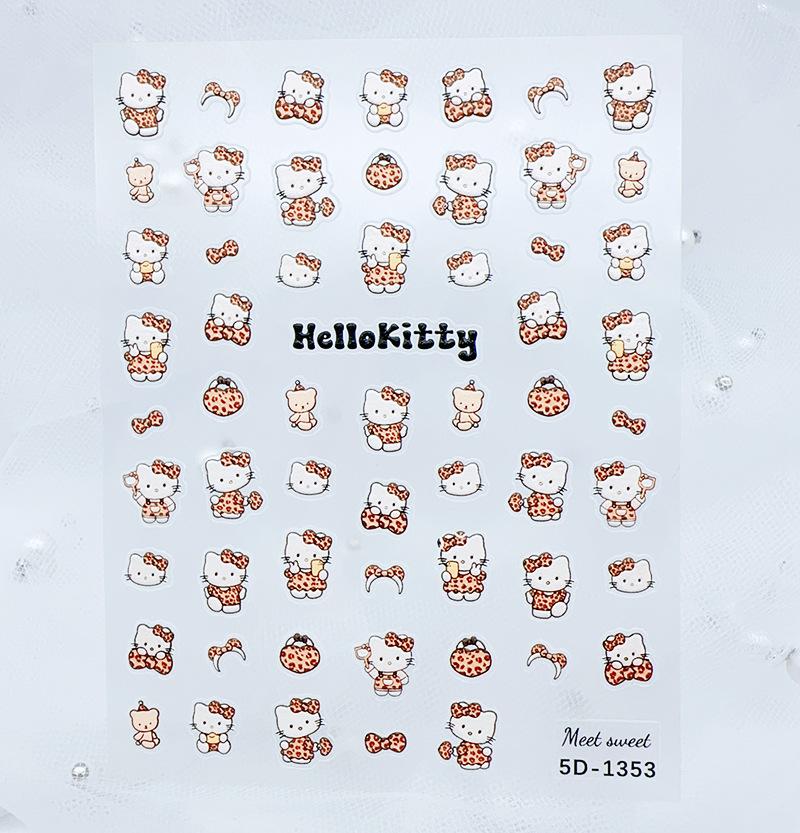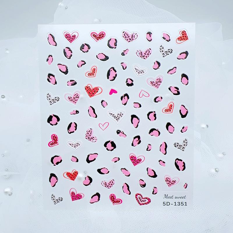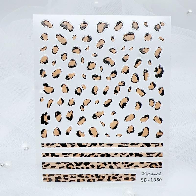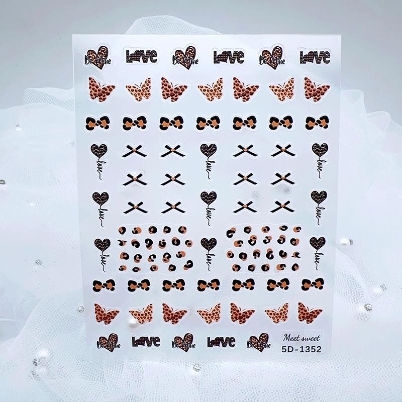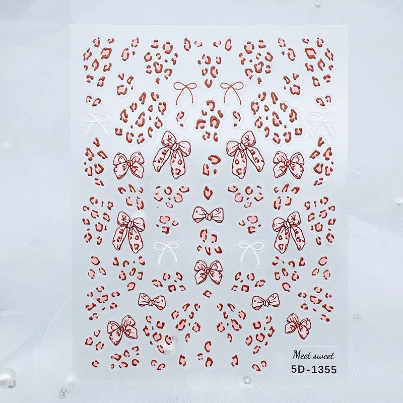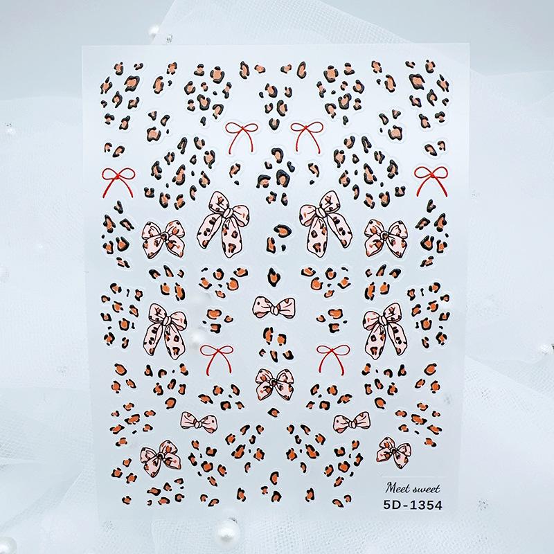 Pegatinas tridimensionales para uñas con relieve 5D, otoño e invierno, lazo de leopardo, leopardo, gato KT, calcomanía para uñas