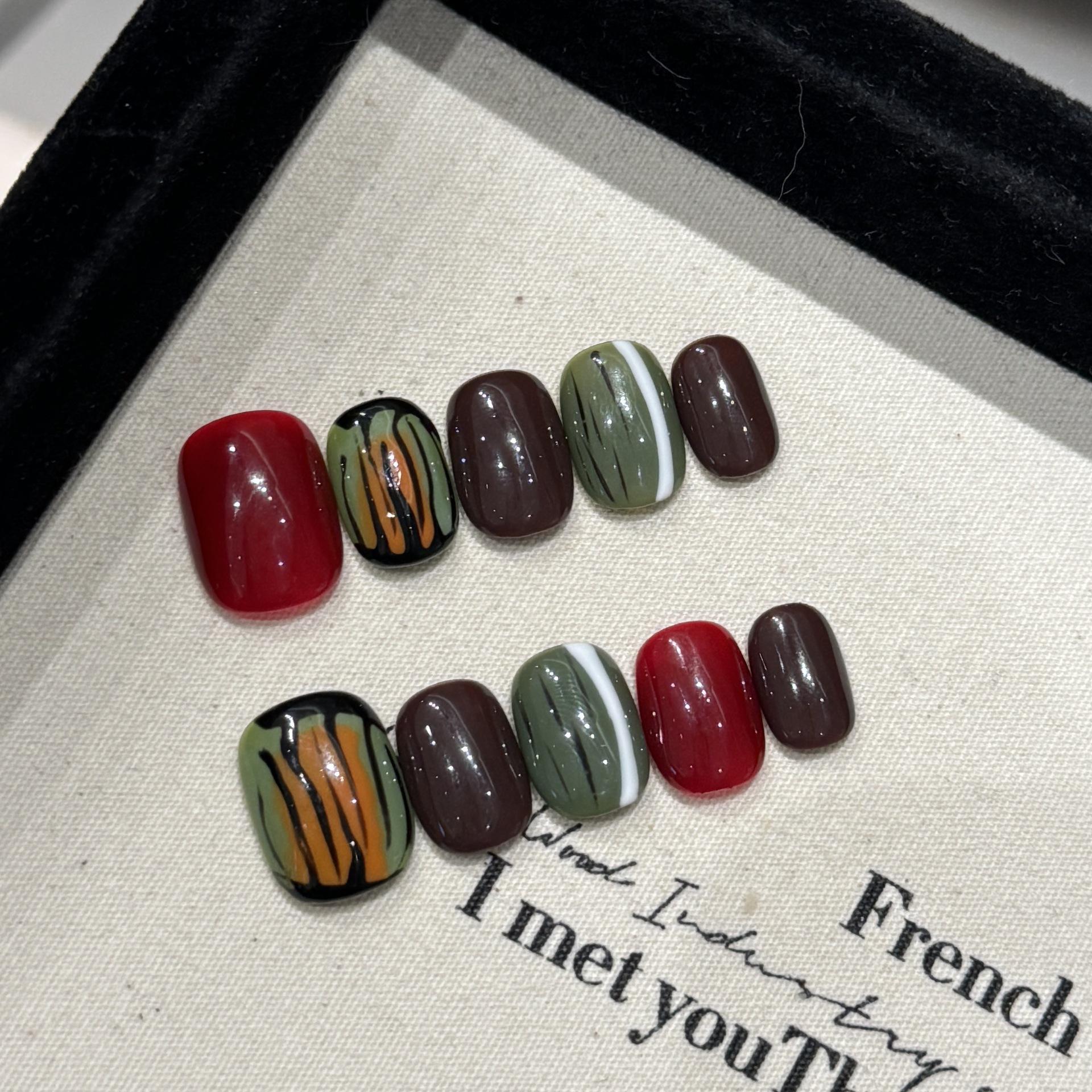 Taiwu armadura pura hecha a mano viñeteado pintado a mano color retro otoño e invierno uso de alta gama arte de uñas terminado parche de uñas corto