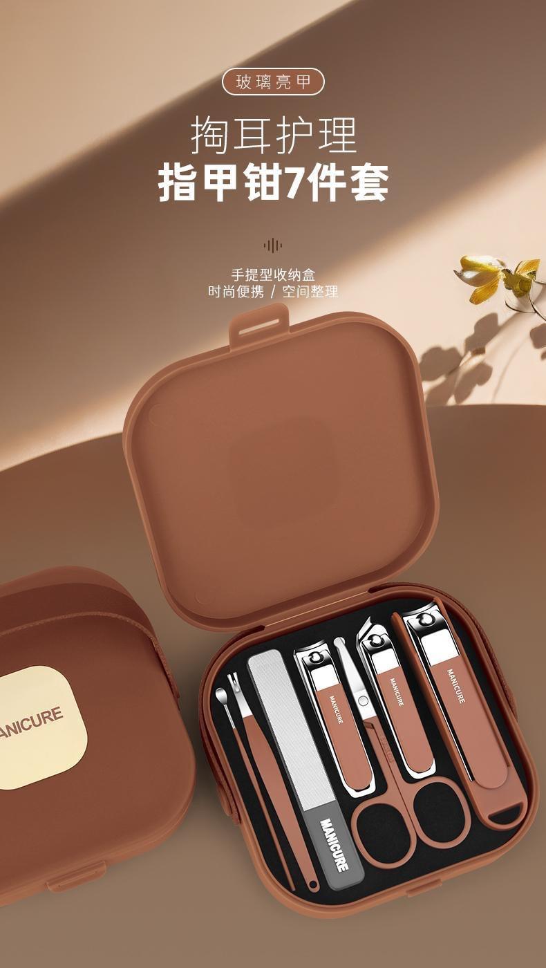Brown manicure 7-piece set [carrying box], Milky white manicure 7-piece set [carrying box], Matcha green manic...