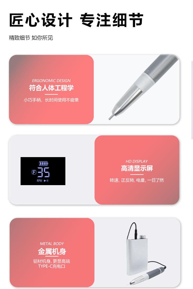 Pulidor de Uñas Inalámbrico Transfronterizo Recargable Amoladora de Uñas Silenciosa Salón de Uñas Venta al por Mayor Herramientas Recargables para Uñas