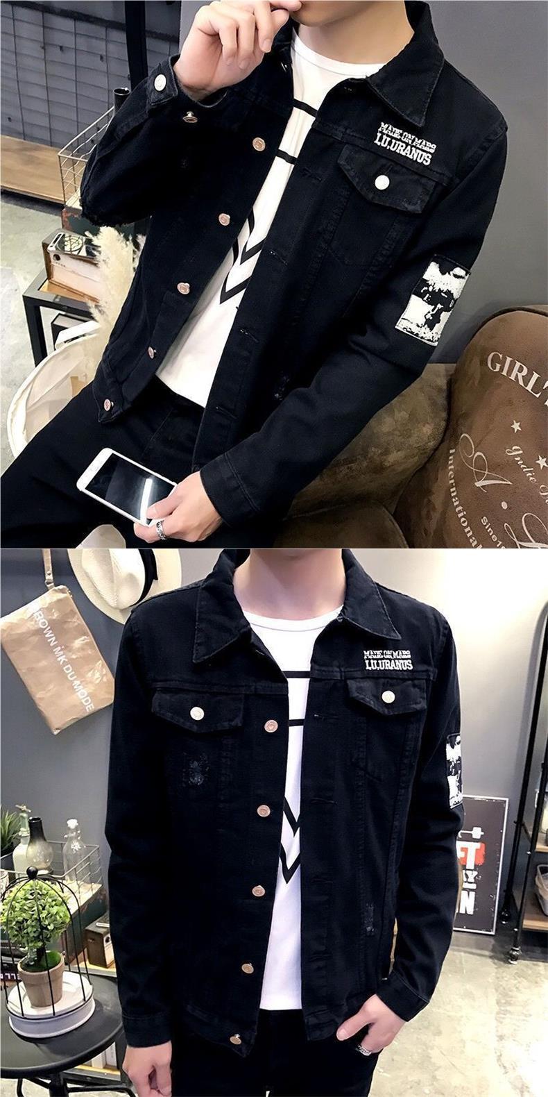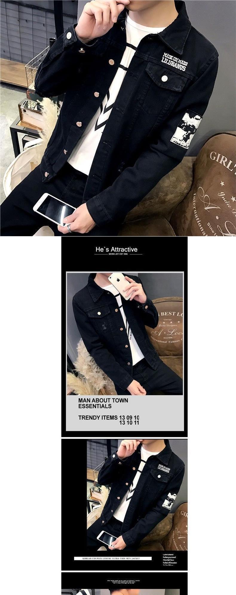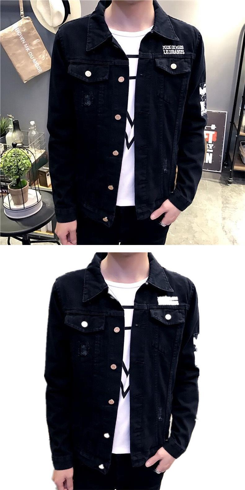 Otoño 2018 Nueva Chaqueta de Moda Coreana para Hombre Juvenil Ajustada Guapa Ropa Chaqueta de Mezclilla Negra para Hombre